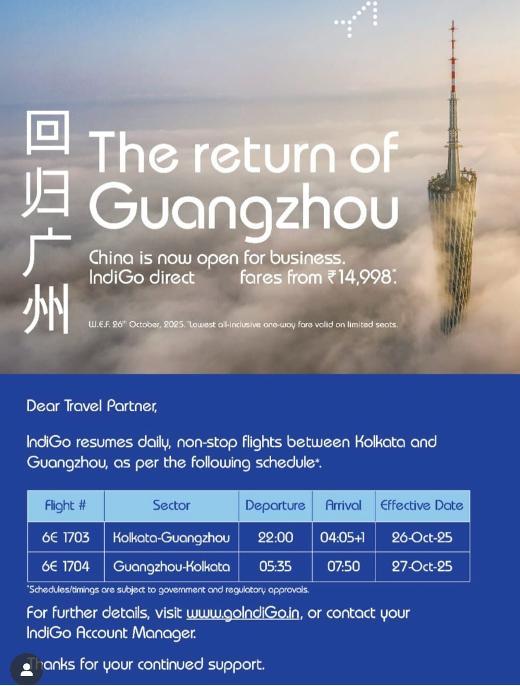 综合《印度斯坦时报》和法新社26日报道,印度和中国当天恢复直航,首趟航班由印度最大航空公司靛蓝航空执飞,于印度标准时间晚10时从加尔各答飞往广州。报道称,这标志着两个亚洲人口最多的国家时隔五年“朝着重建关系迈出重要一步”。此前,印度和中国香港之间已有定期航班往来,从印度首都新德里飞往上海和广州的航班也将在11月开通。