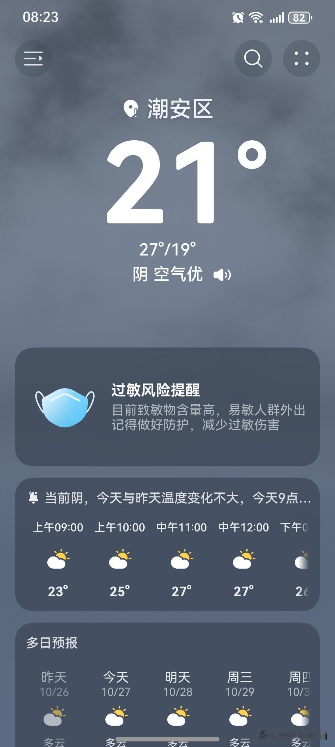 北方已经入冬, 广东人还在过夏天! 小伙伴们! 短袖先别急着收起来, 广东一般要到10月下旬~11月中旬才入秋呢! 27~29日, 广东南部沿海市县多云间阴天, 局部有零星小雨, 其余市县多云间晴天。 近期气温波动比较大, 早晚清凉, 白天气温相对比较高, 需要注意根据气温变化适时增减衣物。 广东已处于流感流行季, 秋冬季流感来袭 留心甲状腺“感冒”, 另外, 寒冷天气致心脑血管疾病急诊量增加, 需要密切留意天气预报, 关注天气最新消息。