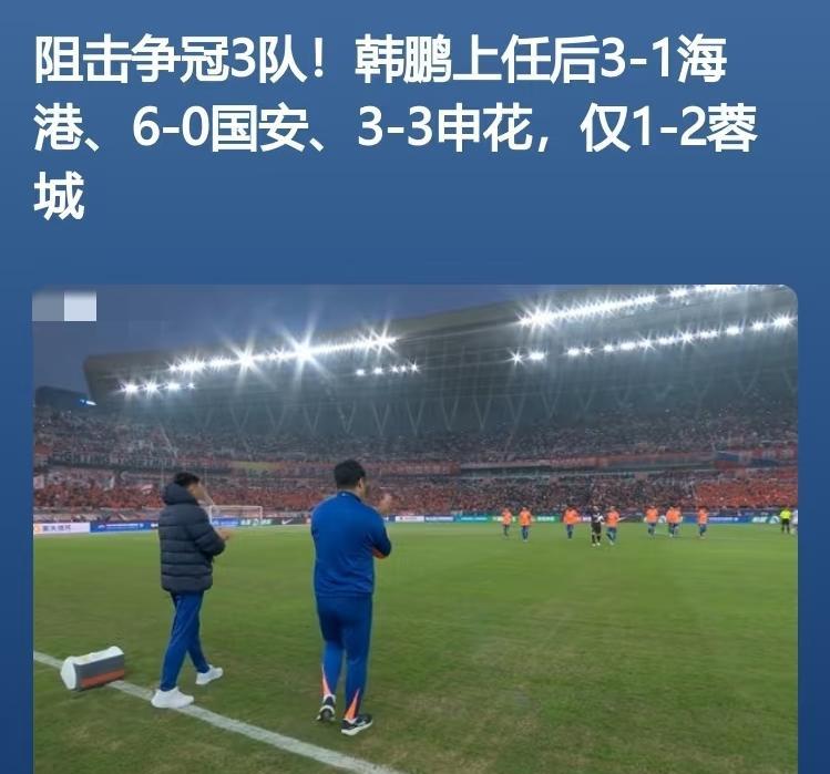够意思了!泰山3-1海港,该做的都做了,就看蓉城自己给不给力了! 本赛季,山东泰山先后主场6-0国安、客场3-3申花,最后3-1海港,中间还客场1-2输给蓉城,可以说没有泰山,中超冠军早诞生了,蓉城早与冠军无缘了。 当然,主导这一切的就是泰山临时主帅韩鹏,他上任以后,一改球队颓废的气势,让泰山队重新找到赢球的感觉,连创佳绩,挽回了中超豪门的颜面,同时,客观上助力蓉城角逐冠军! 开个玩笑,假如,蓉城夺冠,庆功宴时,泰山将帅是要做主位的,韩鹏居功至伟,C位!#山东泰山队#