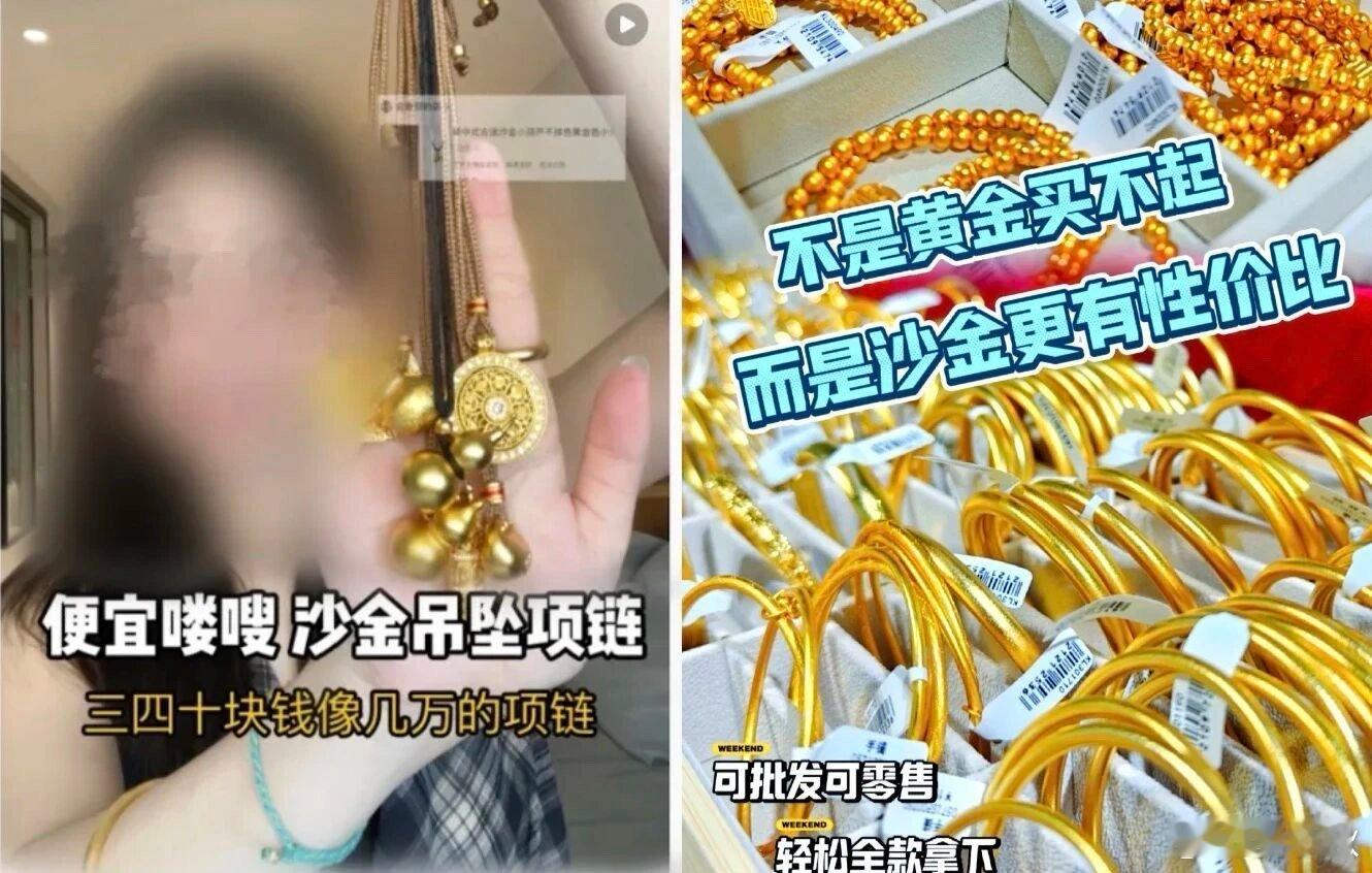 其实,沙金饰品的成分,主要是铜镍合金,长期佩戴有可能磨损掉镀金层,释放其中的镍。部分沙金饰品,镍的释放量可以达到国家标准的上千倍。长期皮肤接触会引发过敏甚至增加致癌风险。