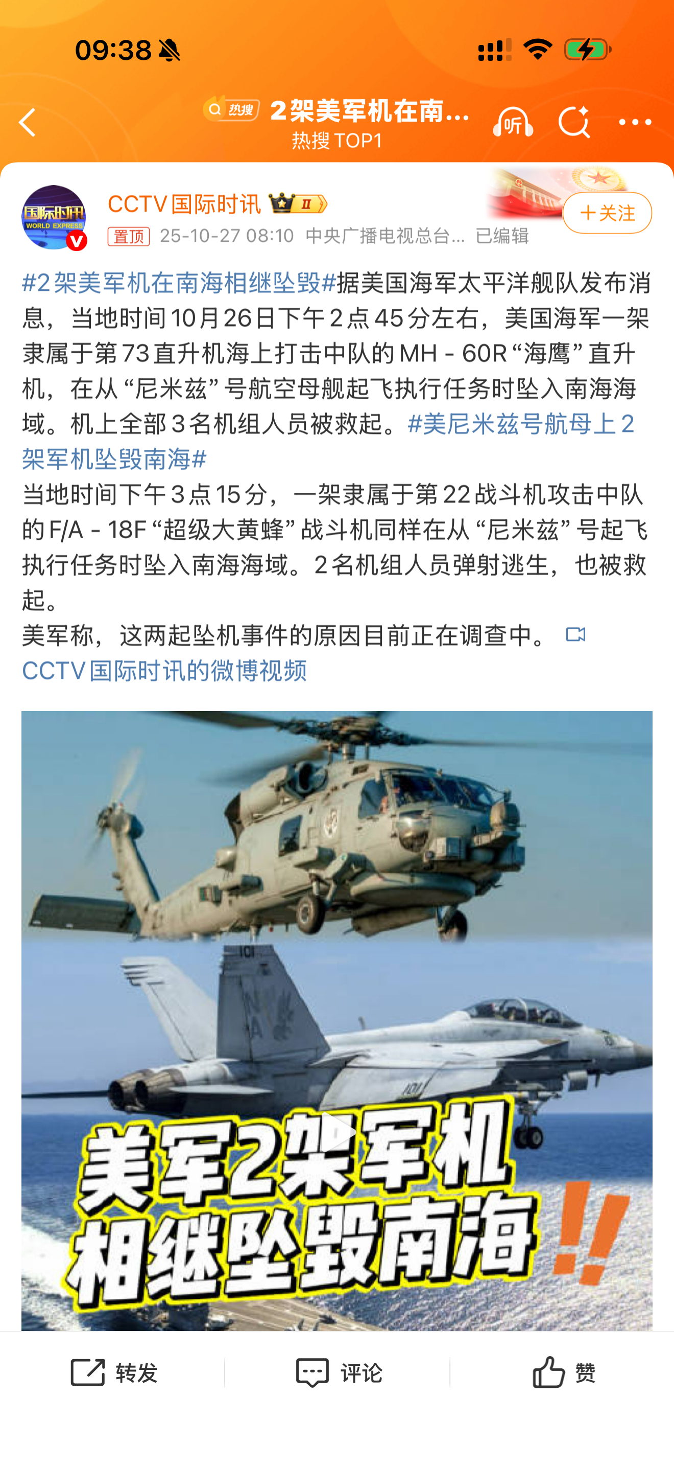 2架美军机在南海相继坠毁 啊…这,什么情况?