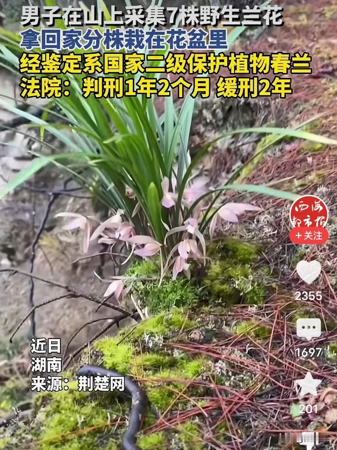 我从山中来,带着兰花草, 种在小园中,希望花开早。 野植受保护,警察上门找, 一共七株兰,判刑事不小。