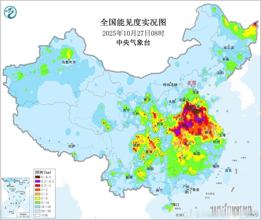 【大雾】今晨在河北南部、山东西部、河南北部和东部、湖北西北部、安徽北部、江苏北部