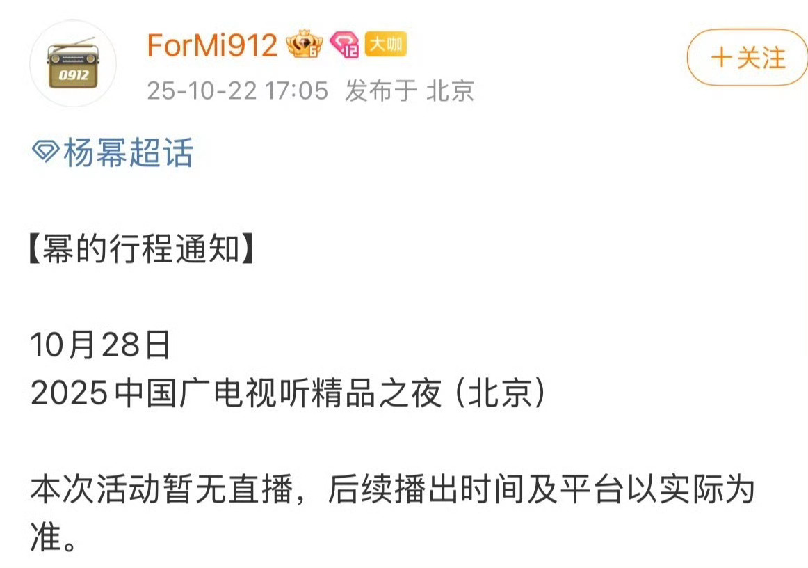 杨幂对接行程官宣广电视听之夜(北京) 参加不了ELLE吧(三亚) 好赶啊