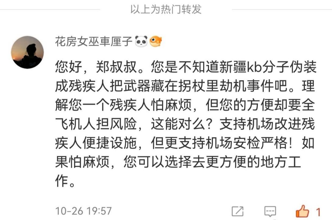 他可能是真不知道“6.29劫机事件”,就是kb份子冒充残疾人,把伪装成拐杖的暴力工具带上飞机的!郑智化 没有连滚带爬热点观点