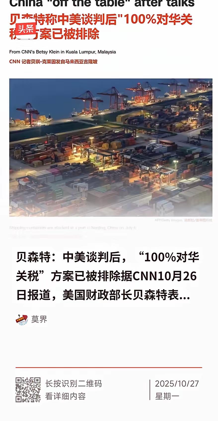 美国已经无力与中国打贸易战,估计在这次贸易谈判中会大幅度妥协,理想的谈判结果如下。 1、美国取消芬太尼关税,双方关税降低到完全对等的10%,中国购买大宗量美国大豆; 2、美国大幅度取消对中国的芯片管制,中国大幅度取消对美国的非军用稀土管制; 3、双方完全取消船舶“靠港费”。 此后,美国会在韩国的首脑会晤中重申“一个中国”并承诺支持中国统一,中国承诺调停俄乌休战谈判。 评论; 我觉得最有可能的是大家都把“关税战措施”往后延期一年实施!给各自一年的时间!相当于“约架”!美国首先挑衅,但是一打起来发现打不过,准备不足!所以就想先暂停,待准备好后再干!但是又不愿意停战示弱,所以最有面子的事暂时熄火,但是口头对外“约架”! 俄乌战争打不动了,中东和平已经基本解决,外部环境变化,最后的摊牌时间到了。拖还是干? 贸易战的本质是什么?,怎么会有贸易战?,如果结束那么简单,何必在当初发动贸易战 美国取消芯片和中国取消稀土并不对等,懂吗?因为所谓的高端芯片,我们正在突破,而稀土美国是未来10年,20年都不可能有什么突破的。而且没有美国的高端芯片,对中国影响也不是太大,顶多人工智能比慢一点而已。但是美国没有稀土,他的国防工业,高科技产业,汽车工业等都得瘫痪 所谓建没性的协商,达成了基本的共识。说明了双方只达成了部分的协定,即关税和大豆,芬太尼可谈拢,但高端芯片,高端光刻机,服务类消费品(软件),稀土,人造钻石,分歧依然大,这些只能先搁置争议,减缓双方相互的加码而已。 芯片不可能,关税也不可能比别的国家低。也就是降个芬太尼税,换咱买大豆,301船舶收费互免。芯片和稀土不可能动