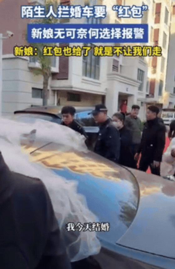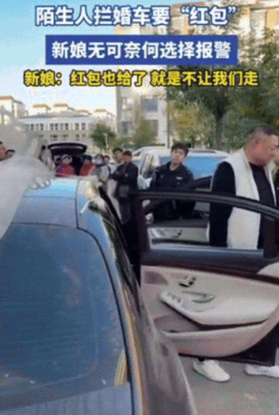 这算不算抢劫?河北一新娘结婚,不料婚车刚上路,就被一群陌生人拦下,笑嘻嘻的索要“红包”,新娘为了不耽误吉时,只能给了一些红包,可是对方却嫌少,依然不肯让!新娘无可奈何选择报警!新娘:红包也给了,就是不让我们走!   清晨天刚蒙蒙亮,新郎带着迎亲车队出发,扎着鲜花的婚车刚拐出村口,七八名陌生男子突然从路边窜出来。   有人直接堵在车头,有人拍打车窗,还有人拽着车门把手,脸上挂着笑,嘴里喊着“恭喜恭喜,给点喜钱沾沾喜气”。   新郎以为是附近村民讨彩头,赶紧让伴郎递出准备好的小红包,里面装着十块二十块的零钱,没想到这群人接过红包翻了翻,脸色立刻沉下来。   为首的中年男子把红包往地上一掂:“这么点钱打发叫花子?每人最少一百,不然别想走!”   伴郎赶紧解释小红包图个吉利,对方却更凶了,有个人直接趴在引擎盖上,手拍着车头喊:“不给够就耗着,看你们耽误得起吉时不!”婚车后面很快堵起一串车,喇叭声此起彼伏。   车里的新娘攥着裙摆,原本的笑意全没了,她知道按规矩迎亲不能迟到,可这群人明摆着强要,给了红包还不让走,道理说不通。   她让新郎别冲动,掏出手机拨通110,声音带着急:“我们婚车被人堵了,给了红包还不让走,就在城郊路口!”   等待的十分钟像熬了半小时,拦车的人还在车外起哄,有路过的村民想劝,被他们怼回去:“结婚给喜钱是老规矩,关你啥事!”直到警笛声越来越近,这群人才收敛了气焰。   民警下车一看现场,当即皱起眉,拦车的人还想辩解是“讨彩头”,民警直接打断:“堵路强要财物,这是寻衅滋事,已经违法了!”听到“违法”俩字,几个人瞬间慌了神,赶紧道歉说再也不敢了,灰溜溜地散了。   车队重新启动时,吉时已经过了小半场,新人亲友脸上都没了原先的喜气,后来新娘说起这事,语气里满是气:“不是舍不得钱,是这做法太恶心,好好的喜事被搅得添堵。”   其实这事儿根本不是啥“老规矩”,以前邻里讨喜,给颗糖、道句祝福就够,哪有强要的道理。   就像陕西之前有七个人拦婚车要红包,最后被拘留五天;河南也有老人组团拦车,照样被处理,民警说得明白,这种行为轻则违反治安管理,重则可能算敲诈勒索。   最可气的是,这些人就盯着新人“怕耽误吉时、爱面子”的心思,专门挑婚礼高发期在路口蹲守,你越妥协,他们越嚣张。   这场闹剧虽没造成大损失,却戳破了遮在陋习上的“民俗”外衣,婚车要走的是幸福路,不是被人趁机敲诈的“敛财路”。   新娘报警这一下,不仅救了自己的婚礼,更给那些想趁机占便宜的人提了醒:讨喜得有分寸,越界就是违法,没人会惯着。