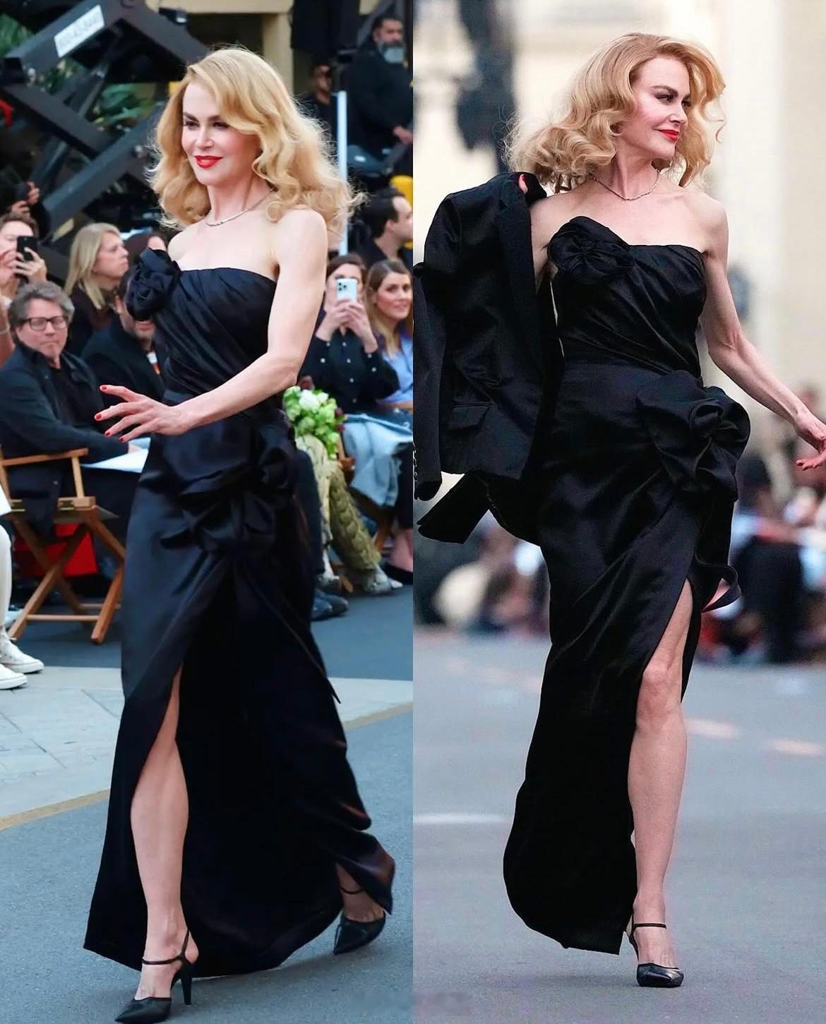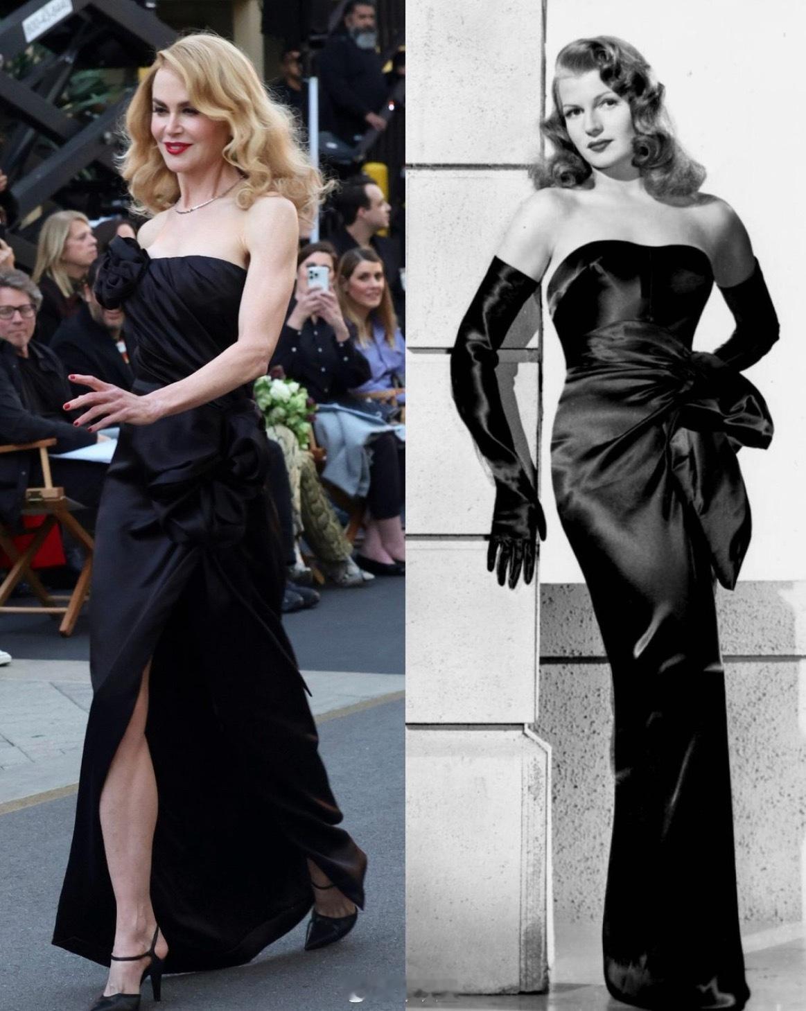 而妮可·基德曼本人则致敬了黄金时代女星丽塔·海华斯在电影「吉尔达」中的角色造型。