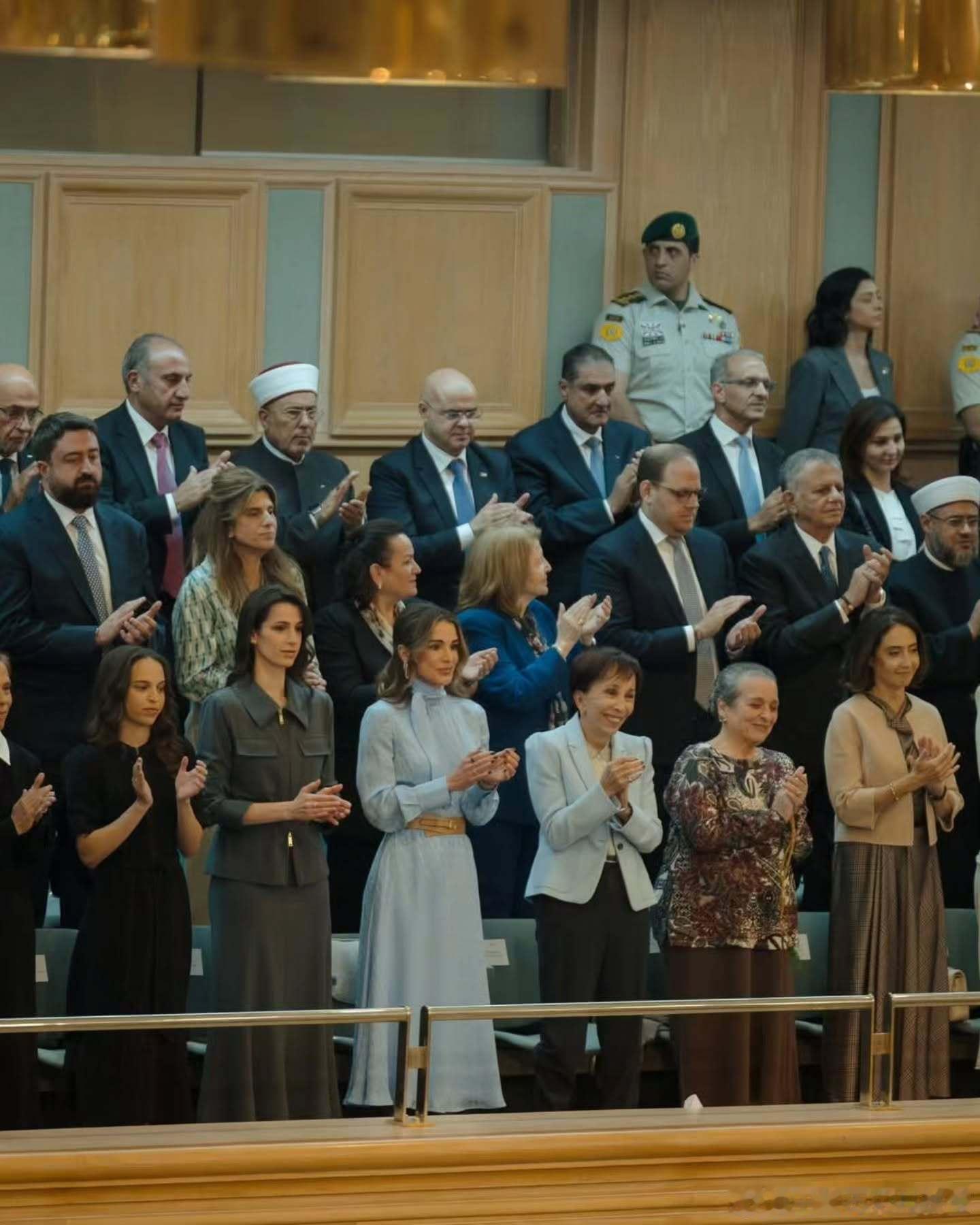 新闻 2025.10.26 约旦王室成员出席一年一度的国会议员开幕,拉尼亚和拉杰瓦的连衣裙分别来自Valentino和Self-portait,拉杰瓦最近穿深色比较多啊。