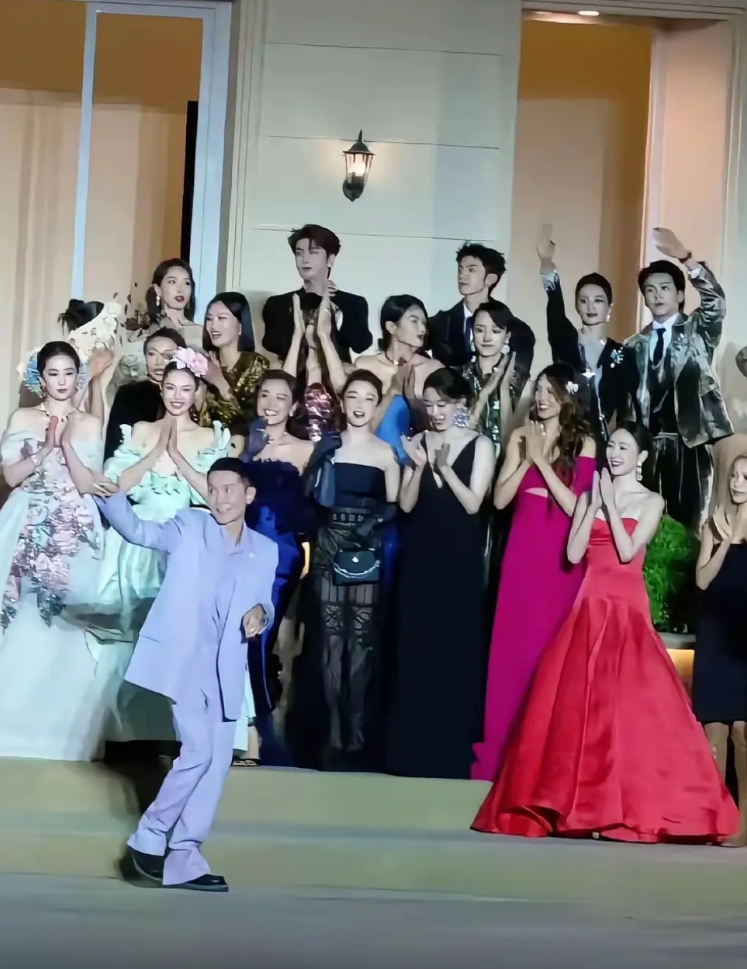 但她不急不躁,当其他的女明星争前恐后的争着第一排C位的时候,她淡定的站在最后排。