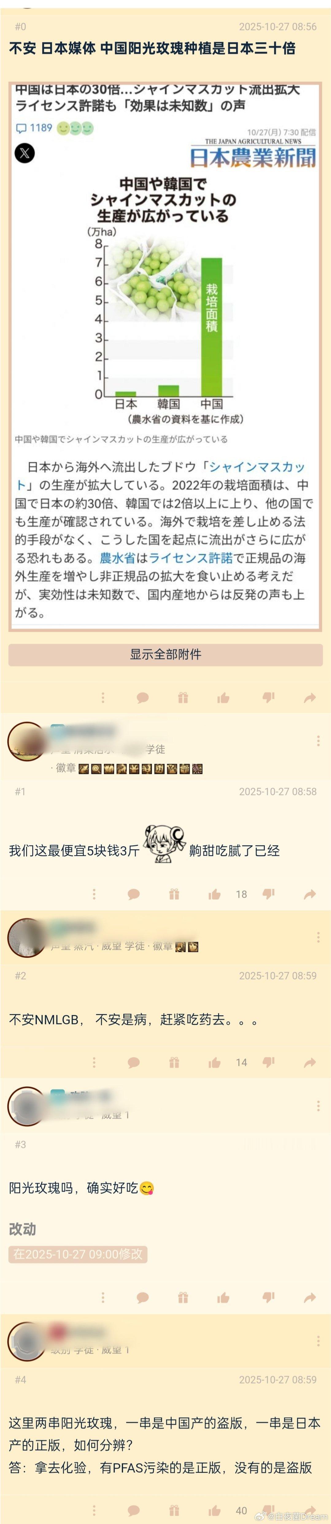 日本人又感到不安了,日本媒体:中国阳光玫瑰的种植面积是日本的30倍![哆啦A梦吃惊][哆啦A梦吃惊]
