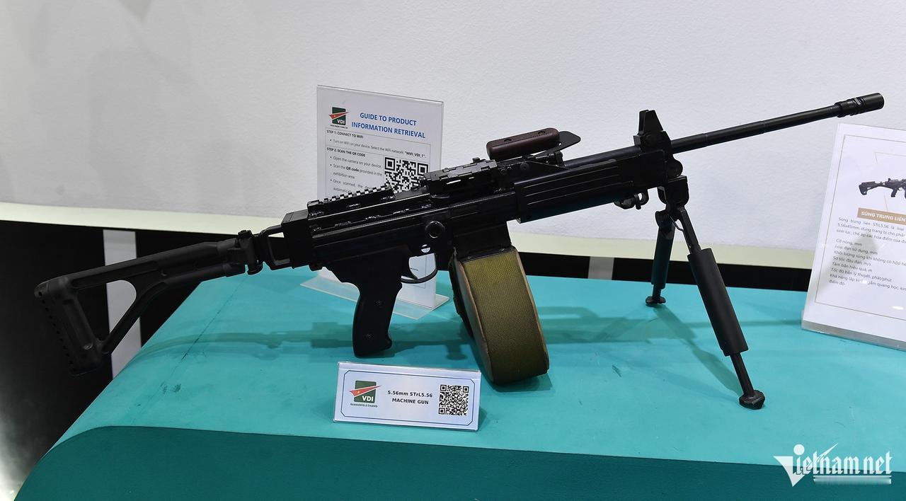 越南国产内格夫轻机枪 StrL5.56轻机枪,这是一种专为步兵部队设计的自动武器,用于消灭敌方人员并压制地面火力点。该枪重7.6kg,可配备光学瞄准镜,有效射程1000m,理论射速850至1050发/分钟。