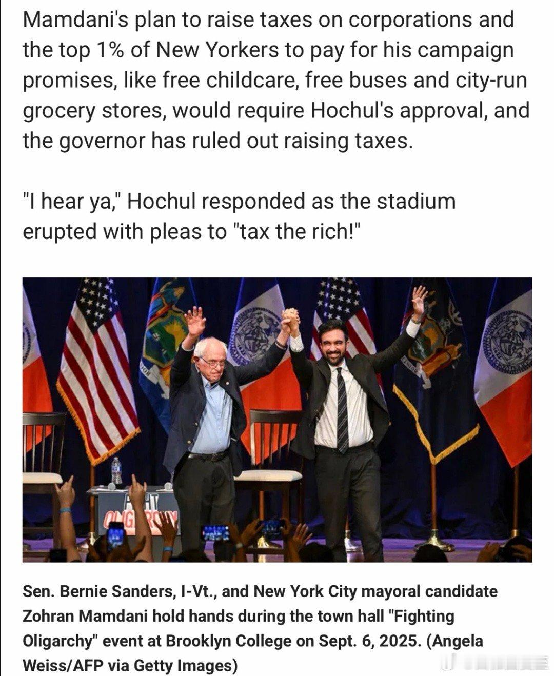 纽约州州长站台时,集会现场高呼Tax the rich! “给有钱人加税”,她说:我听到了你们的心声