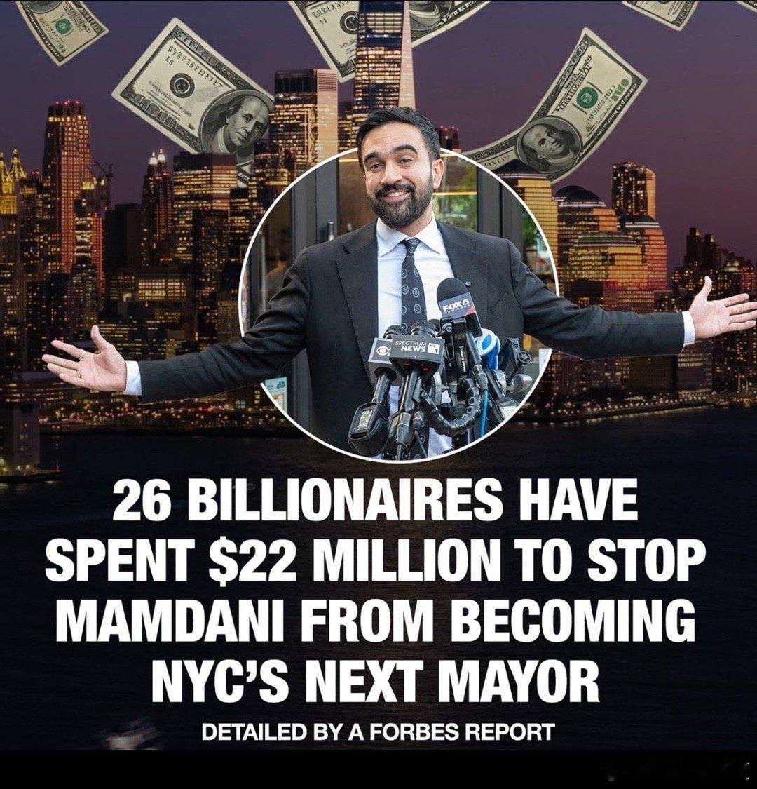 据福布斯统计,26位亿万富翁一共捐了$2200万,用来击败Mamdani