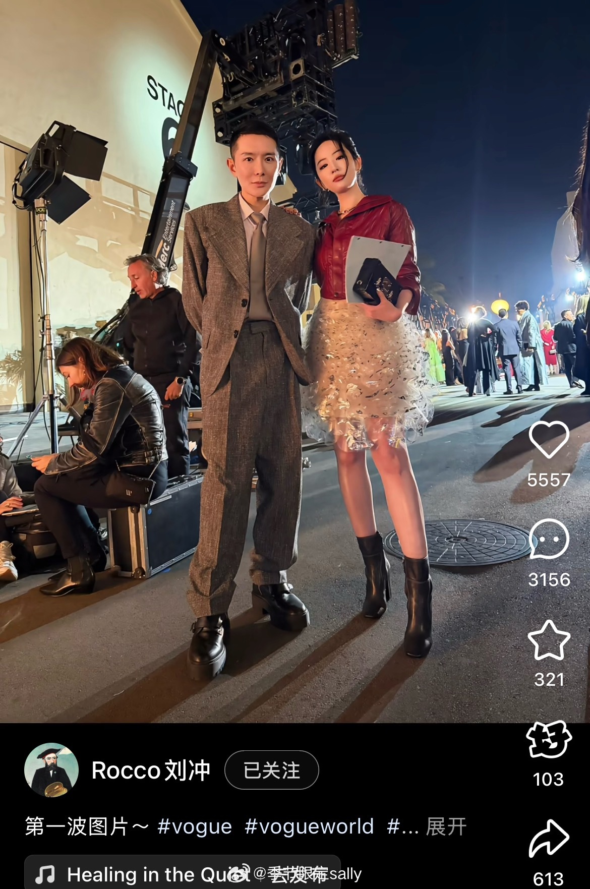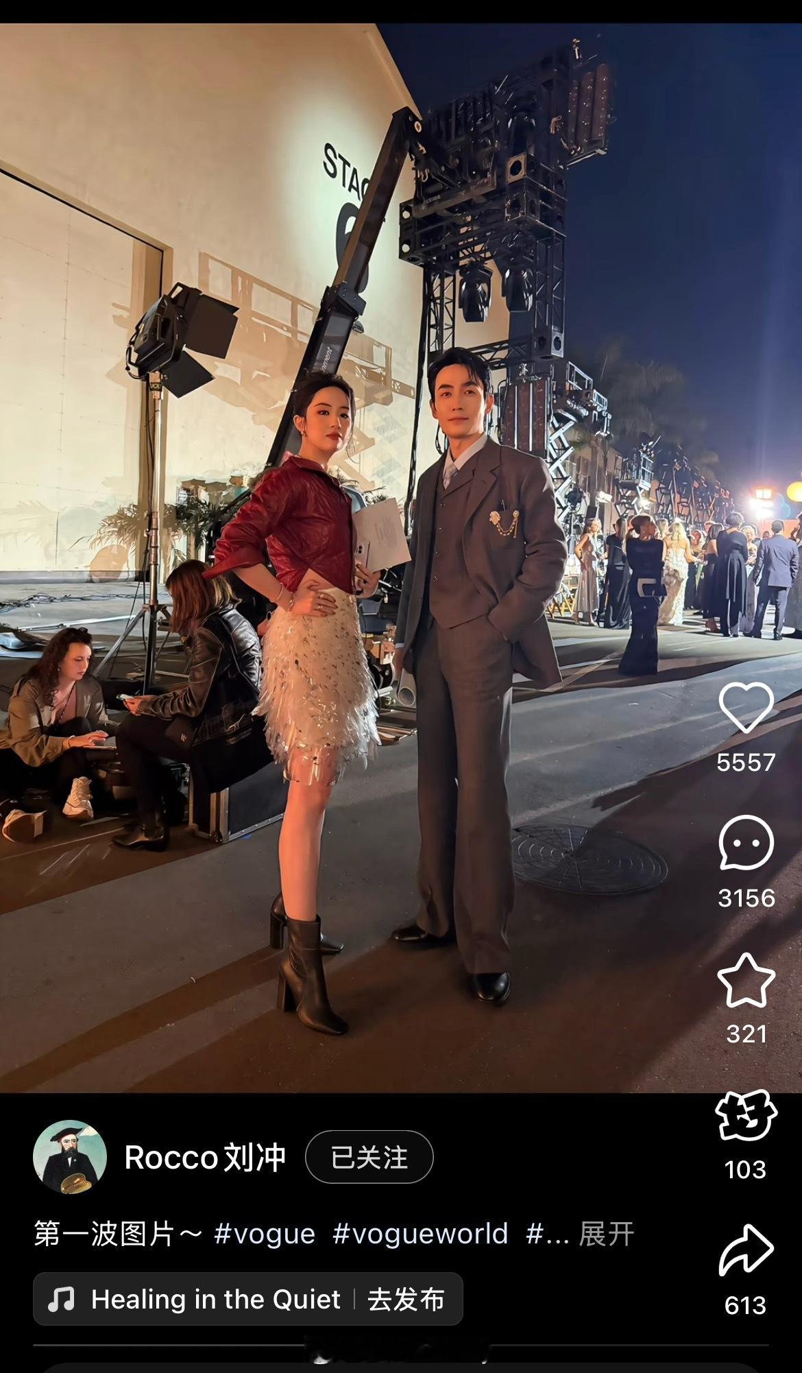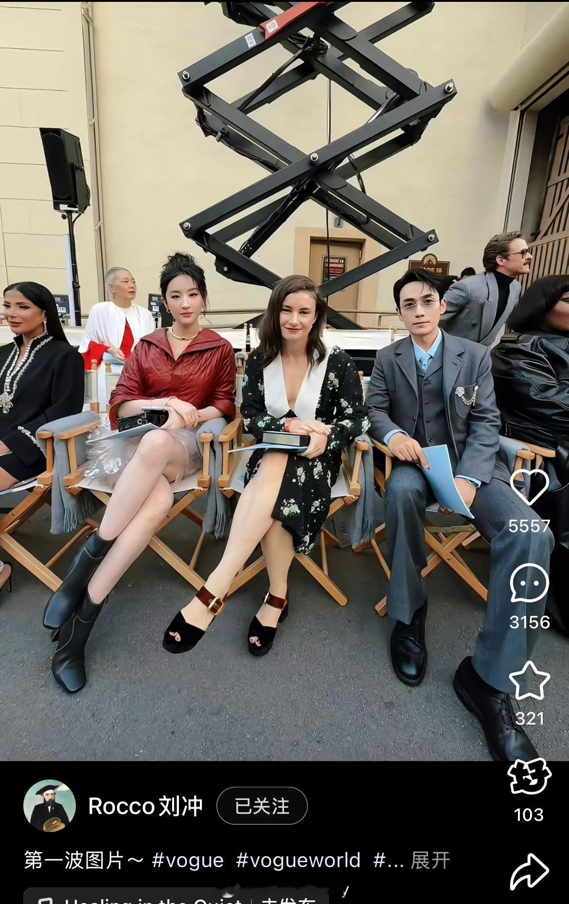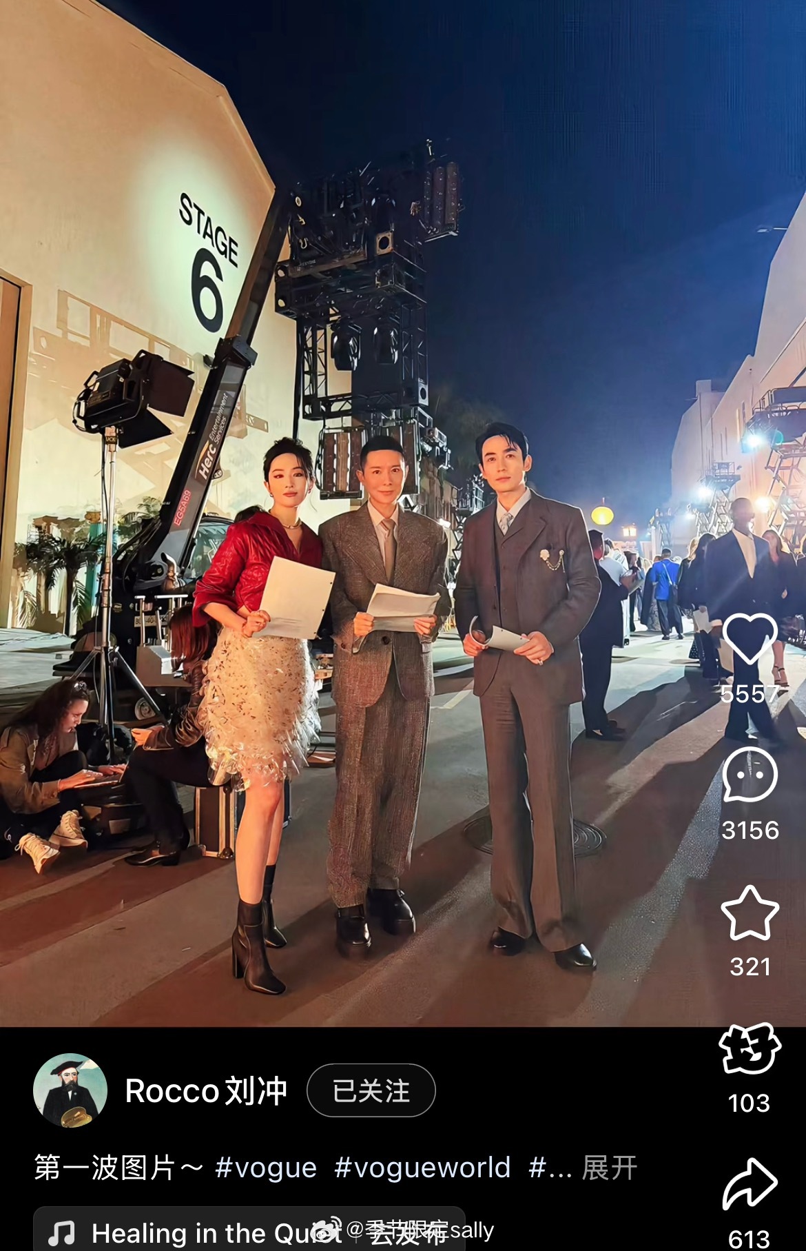 刘冲分享了和刘亦菲、朱一龙在洛杉矶美版vogue的活动的合影,还有安娜温图尔 刘亦菲刘冲坐一辆车 刘亦菲朱一龙秀场同框
