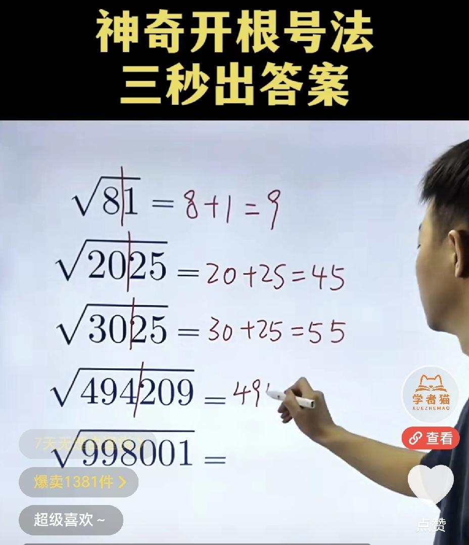 是不是很神奇? 998001开根号,我竟然可以直接口算出。