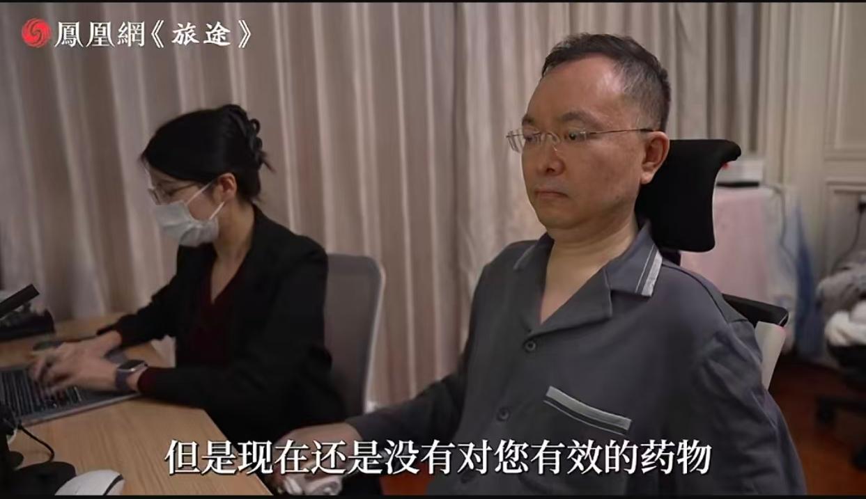 看到三个护工把蔡磊扶起来,蔡磊脖子一甩,让人心里一凉! 蔡磊现在瘫痪到已经说不出来话的程度,但是还是全天工作,每天要工作到凌晨,而他只能通过眼控打字,每分钟能打50个字左右,这个速度还是很快了! 蔡磊说他已经有一段时间没见到妻子和孩子,因为孩子今年要去西城上学,大家都很忙,他要与时间赛跑,全部时间都要用在科研上。 所幸,他研发的药对基因型的患者有很大帮助,但是蔡磊的病不属于基因型,所以对他疗效甚微,能做到现在这一步他都很满意了! 就像段睿说的,蔡磊现在脖子已经没有力量,无法吞咽,护工只能用枕头几毫升的推进蔡磊嘴里,每吃一口,都会流出一部分,就像婴儿,让人感动的是,蔡磊还是会发自内心的笑。难怪段睿说蔡磊是天生超级乐观!
