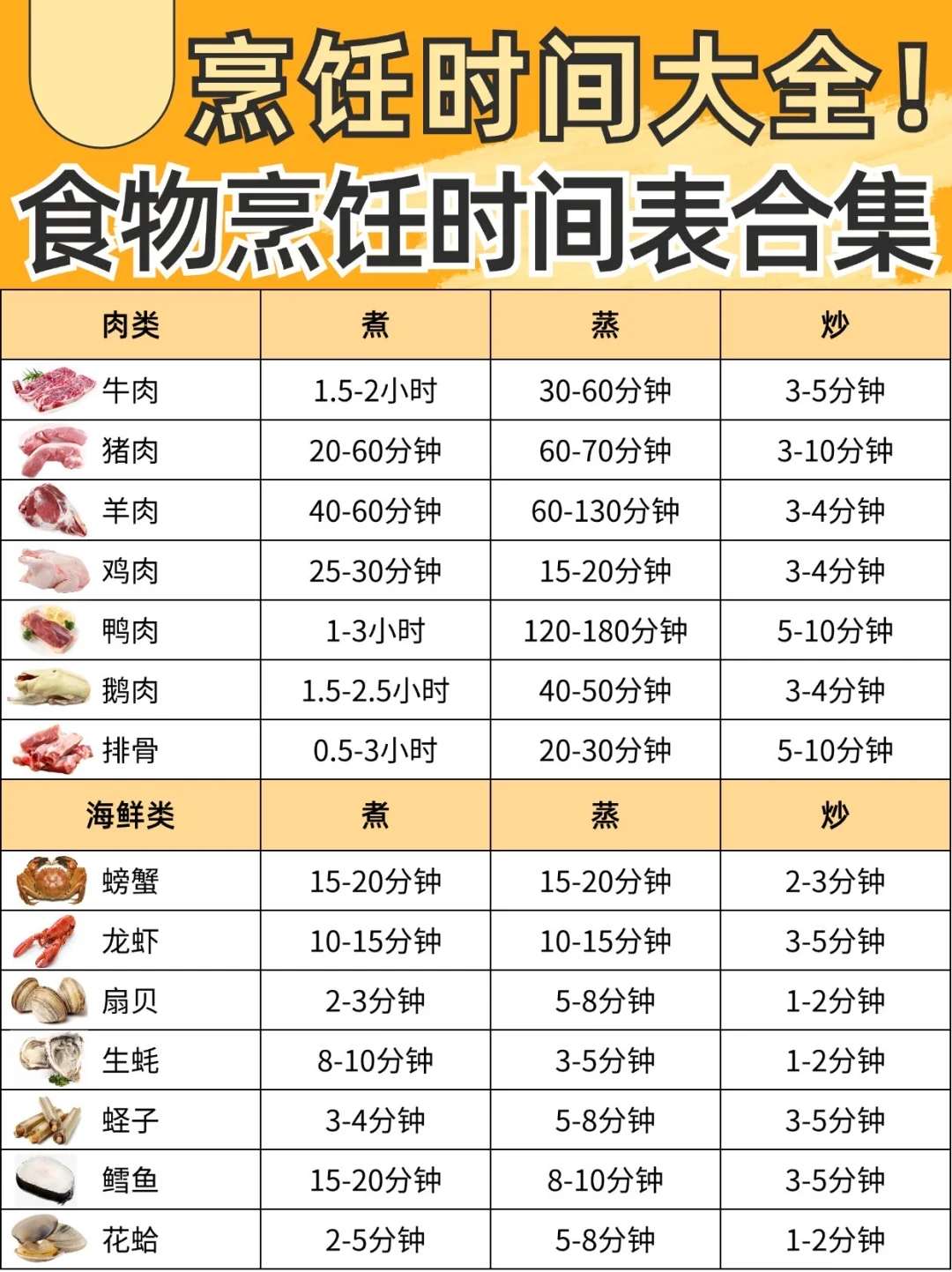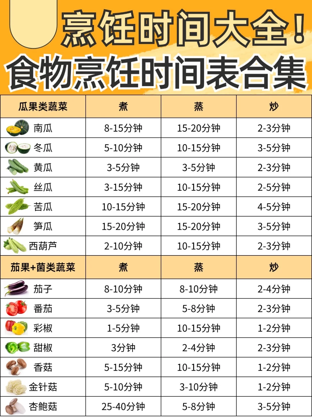 食材烹饪时间表合集🔥蒸煮炒时间参考