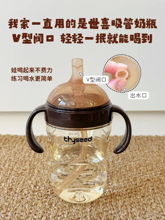 🔹如果你不知道怎么选的话,可以看看世喜吸管奶瓶,它的直饮吸管就是无奶仓的,第一口就能直接喝到奶,而且V型阀口出水轻松,抿住就能喝到水。吸管也比较粗,我当时给娃喝水,还以为起码得适应半个月,结果3天就接受了哈哈,幸亏用的是世喜~