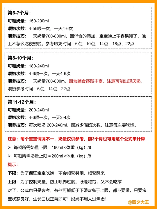 ✔️这时候开始逐步戒掉奶嘴,使用鸭嘴杯/学饮杯,熟悉学饮杯后,在1岁左右,向没阀口的吸管杯、敞口杯进阶,彻底戒掉奶瓶~