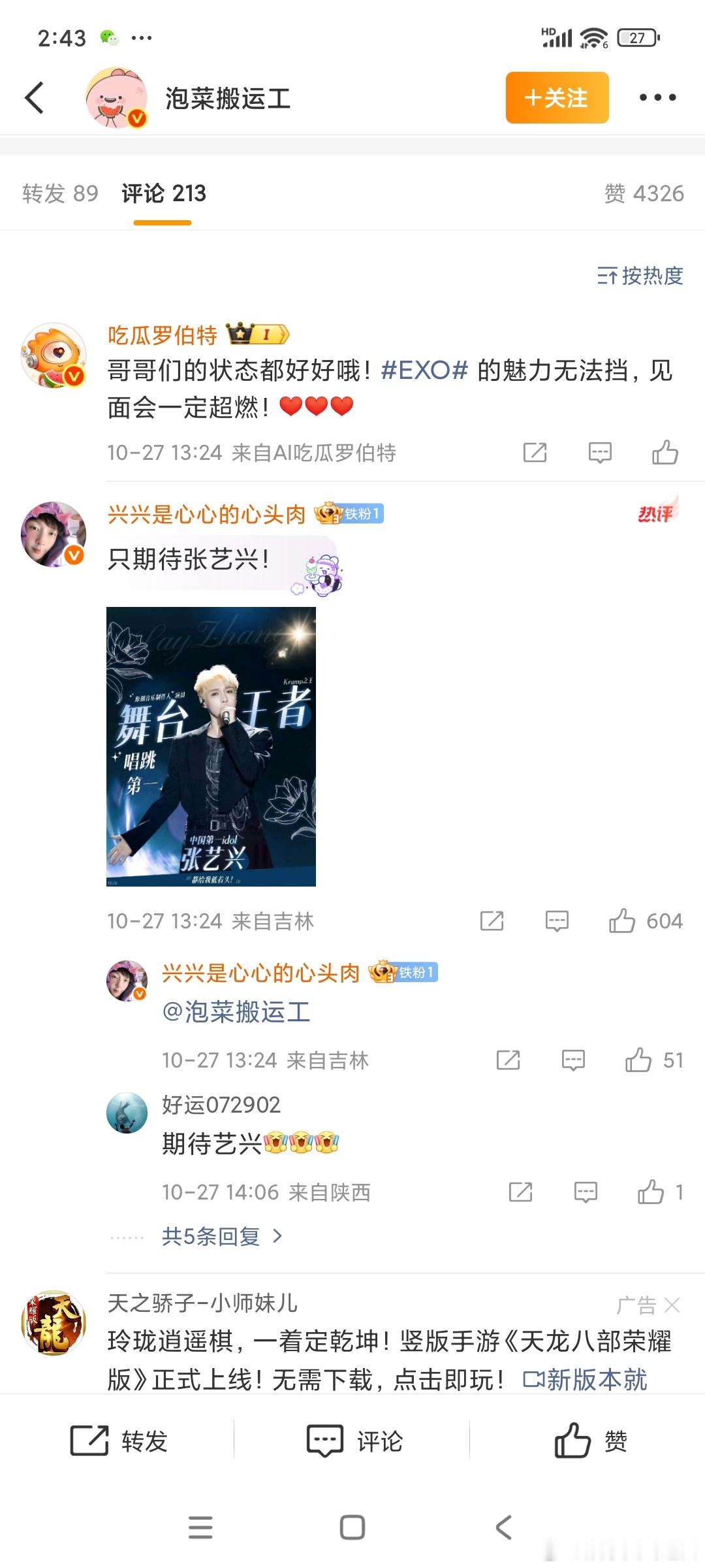 EXO六名成员参与回归今天两个词条贝壳们小试牛刀,所有韩娱号全空成主场了~