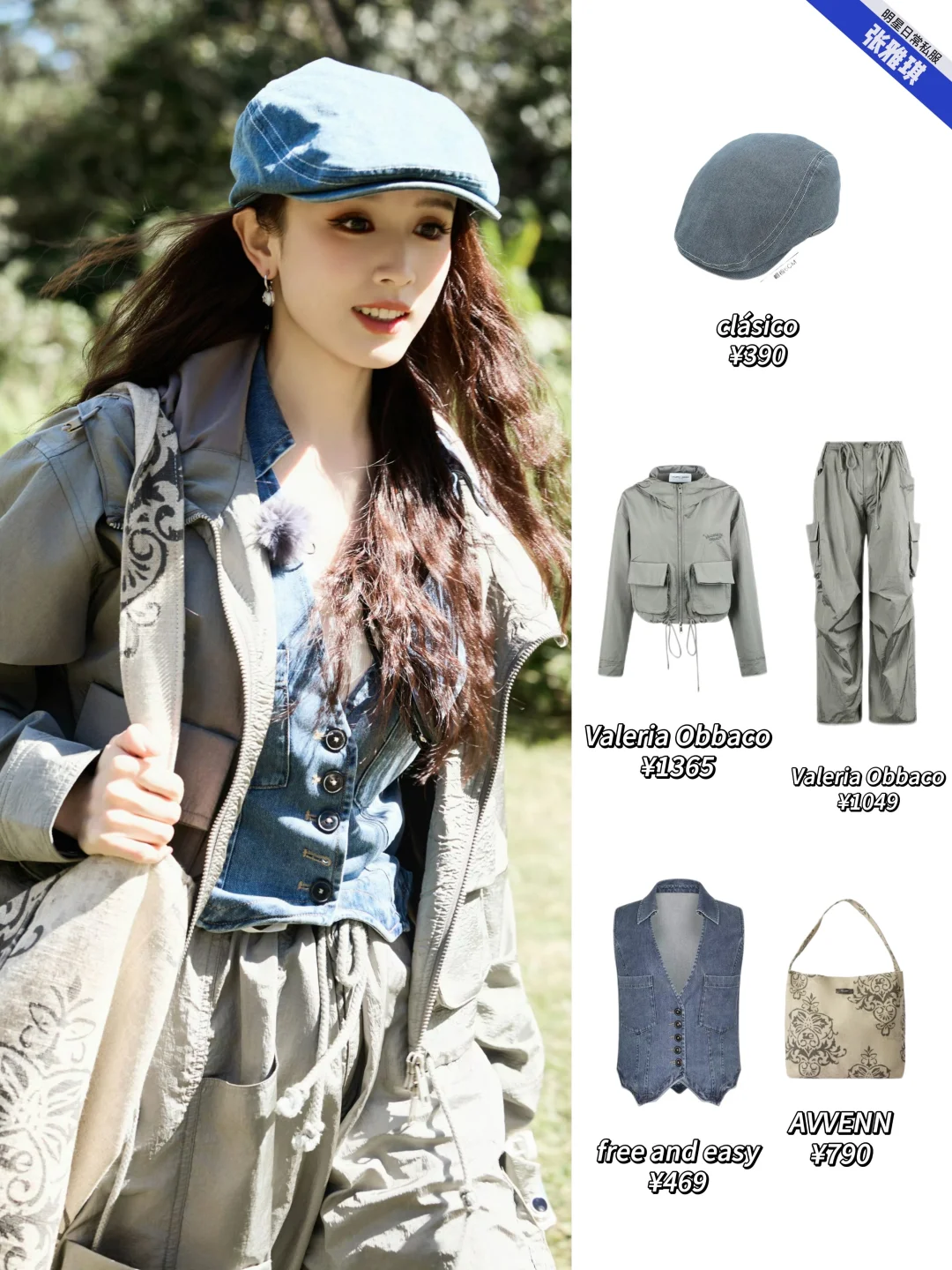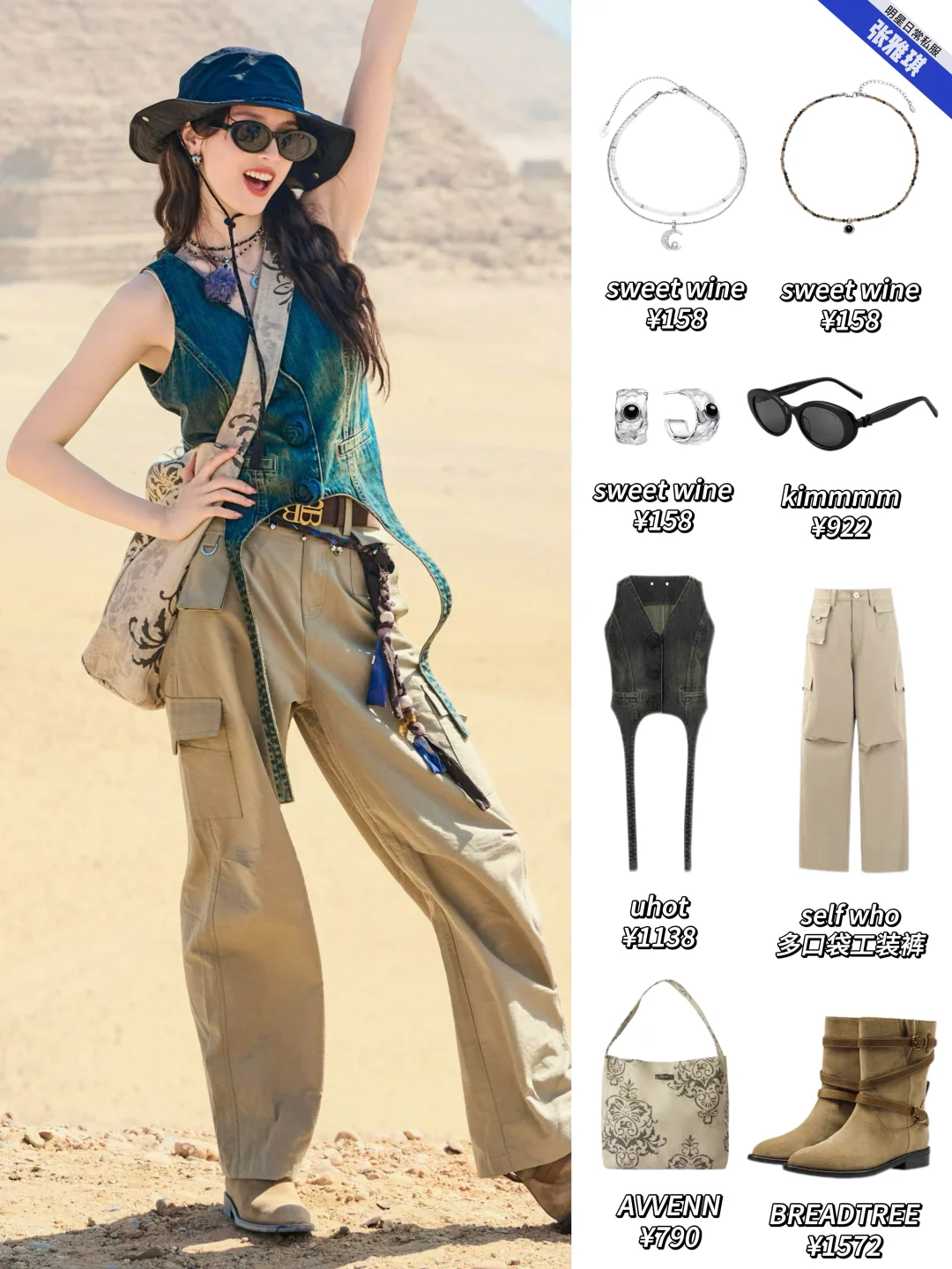 陈瑶秋日穿搭,咖啡色背心牛仔,轻曼时尚
