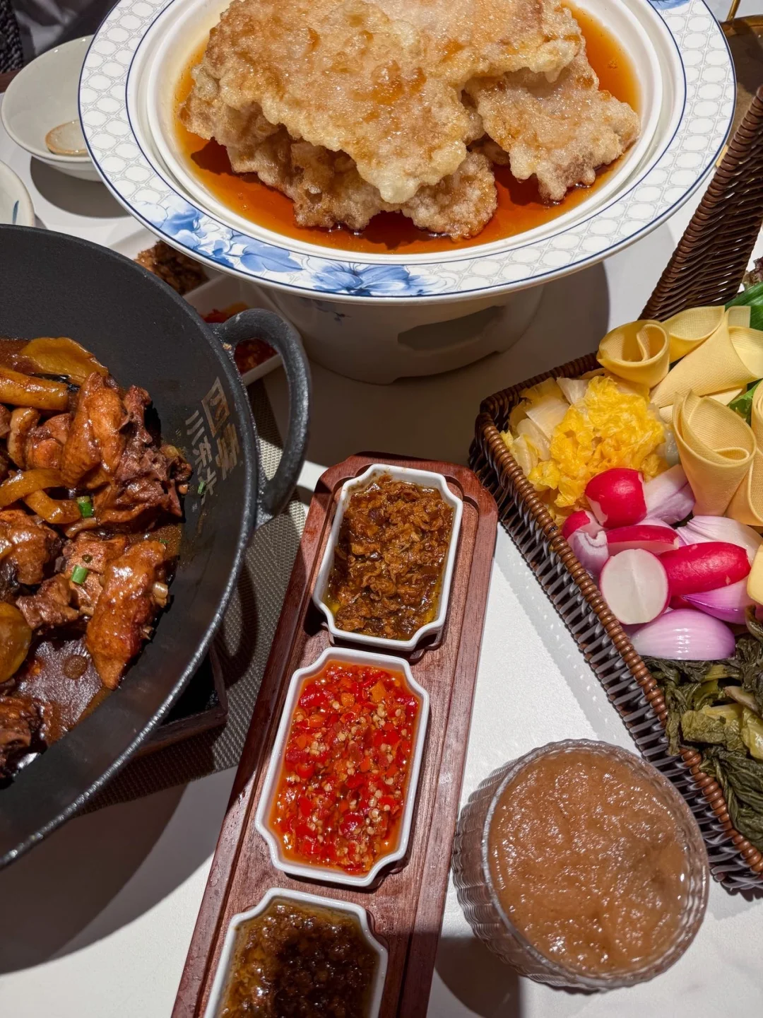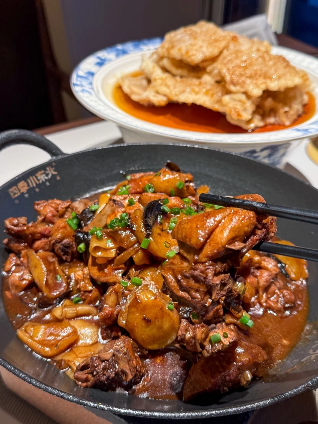 在朋友的疯狂推荐尝到了地道的东北菜 菜品和服务同时在线 上菜速度很快 锅包肉脑袋真的是馋蒙了 🤩 ✔️锅包肉 一定要趁热吃 刚上桌时候外酥里嫩 属于桌桌必点系列 ✔️山野小鸡炖蘑菇 软烂入味 宽粉条土豆干吸满汤汁 菜码大 ✔️山野沾酱菜 神奇解腻菜品种类多 ✔️晾衣大饼 奶香味十足 够四五个人一起吃 冻梨汁也很喜欢 值得一点 二楼还有包房 环境也很不错 爱吃东北菜的朋友值得一试❗ 📍 四季小东北•山野东北菜