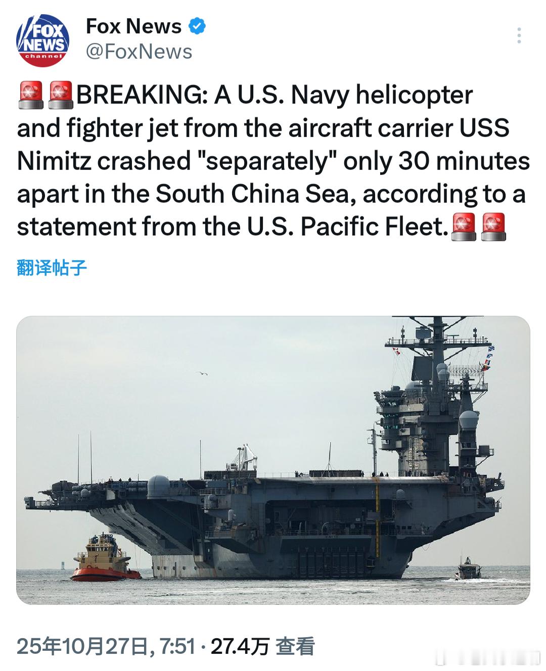 美军回应2架军机在南海坠毁与其说是回应,不如说是通报,美军只是将MH-60R“海鹰”攻击直升机坠海和F/A-18F“超级大黄蜂”战斗机坠海事件,以及两架飞机上共5人获救通报了下。事故原因正在调查中。除此之外,没有更多的信息公布。
