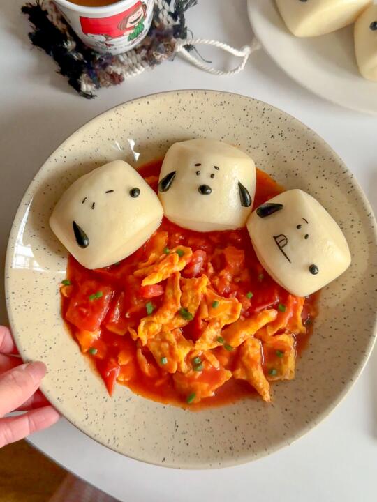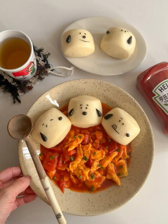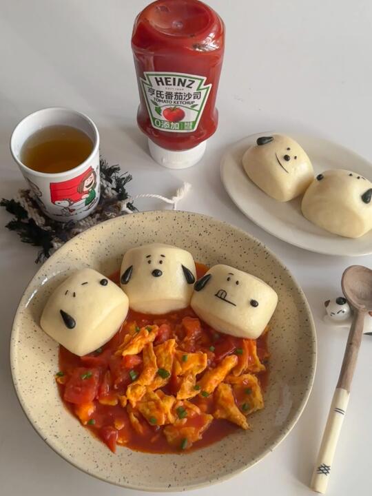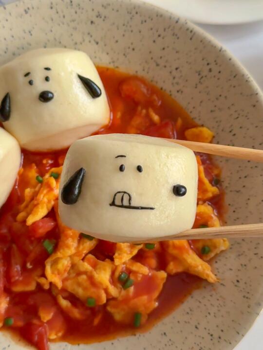 用这两组合做出来的番茄炒蛋真的分分钟拿捏味蕾,配上可爱的馒头幸福感爆棚!!想吃的姐妹快去做!