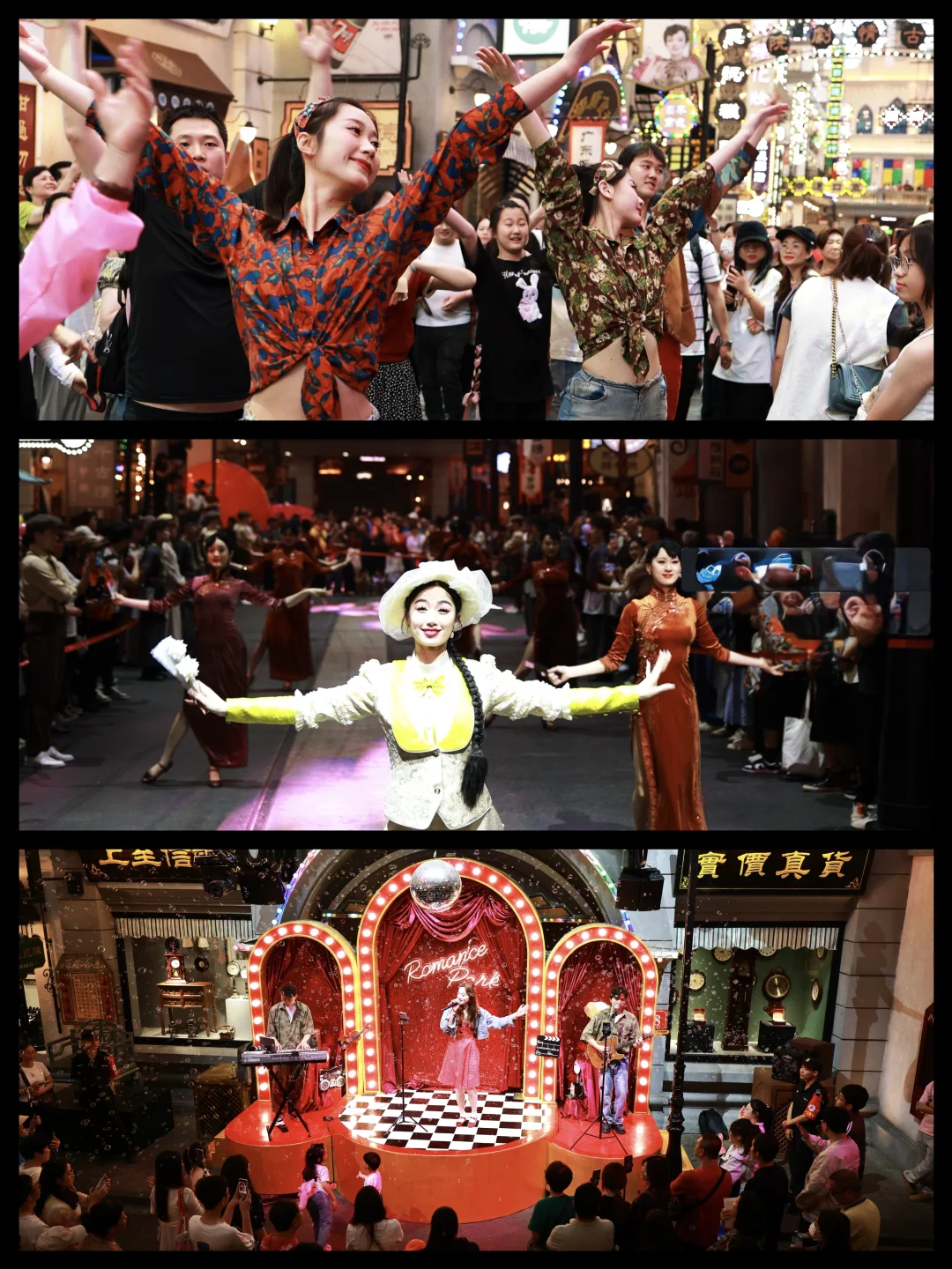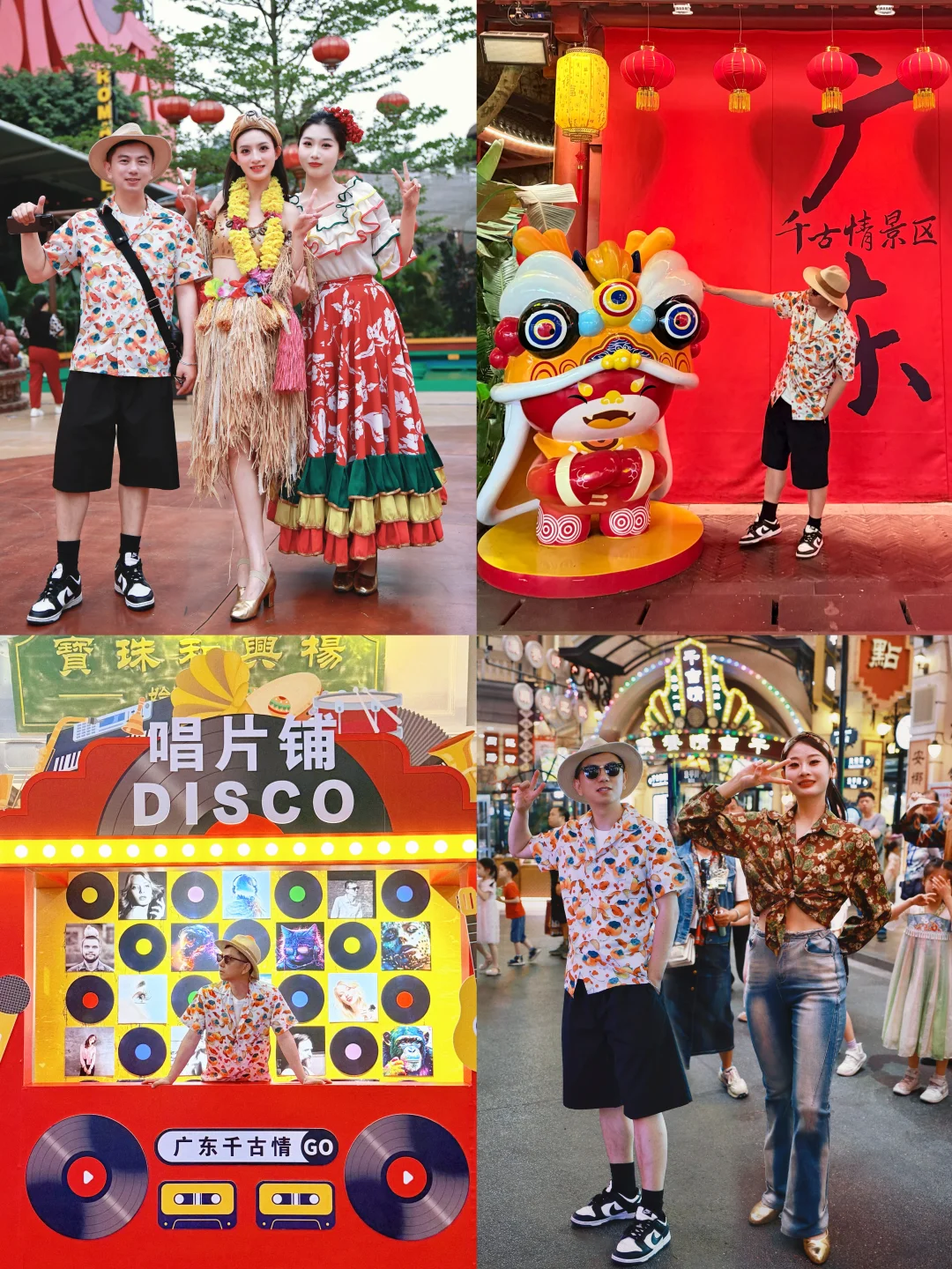 五一还没计划的宝子,墙裂建议去佛山的广东千古情,体验下穿越回到90年代,复古浓度爆表,随手一拍都很有故事感,很适合穿旗袍和复古衫来拍照! 项目从早到晚排的满满当当,一整天都看不完的精彩演出和各种快闪表演!也很适合带娃过来参与!! 📷拍照打卡机位 ✅穿越街 街巷里的霓虹灯牌、南拳武馆、复古商行⋯随便拍到王家卫式港风大片,机位推荐: 门口二楼俯拍整条街/广东钟表行二楼阳台/街上红色电话亭 ✅摩登换装馆 ✅千古情红色背景墙 🎡必看活动 1️⃣《穿越快闪》一起跳复古的舞蹈💃还能和npc互动拍照,氛围很好 2️⃣《我回1990》一定不能错过!和npc跳舞,踢毽子,翻花绳等,零距离互动真的好欢乐 3️⃣《舞狮教学【醉狮】》了解舞狮文化,现场学习舞狮,上台互动还能赚取银票兑换🎁 4️⃣《广东千古情》 一生必看的演出!!太生动太震撼了,实景真人演出效果直击内心,尤其是一代宗师黄飞鸿从天而降,在现场飞檐走壁看得热血沸腾 5️⃣和十三姨赴一场《繁华之约》,在线看黄师傅英雄救美😍 6️⃣《一代宗师》着武学宗师一起学武术 7️⃣爆笑互动《哈哈哈星人》看谁笑的时间长可以拿到银票哦 8️⃣《天上街市》不要错过了!热热闹闹互动体验太棒了 不同时段的表演不一样,记得提前在宋城旅游的小🍊序看当天的实时节目单!! 跟NPC互动玩小游戏,都可以赚取银票哦!银票不仅能在小吃街抵折扣,集满8张还能兑换神秘🎁 📍樵高路86号广东千古情景区 🚗交通:建议自驾,停车20r/天 🚇地铁:佛山地铁2号线「南庄」站,打车15分钟到达