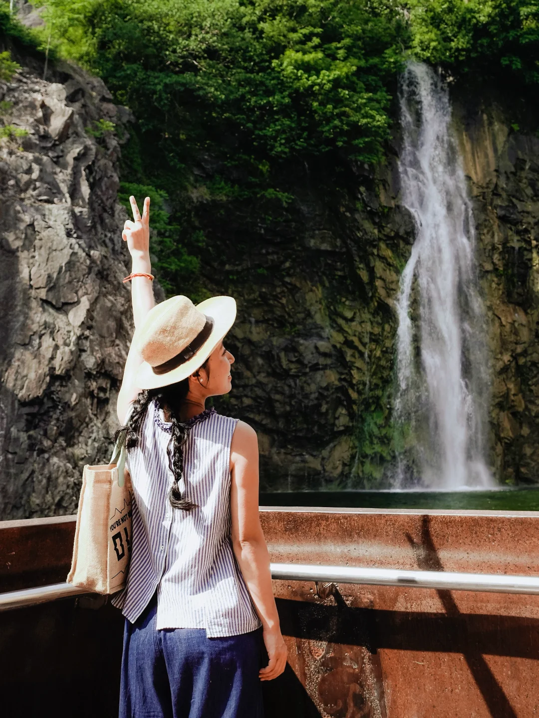 💧站观景台拍Tiffany蓝湖面,崖壁藤蔓倒影像莫奈笔下的睡莲(戴草编包当道具超有度假感)