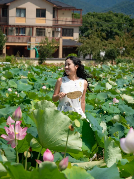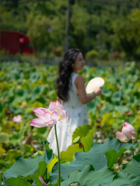 ✅ 傍晚17:00-18:00夕阳洒在荷塘上,蓝调超有氛围感,适合拍温婉风格。
