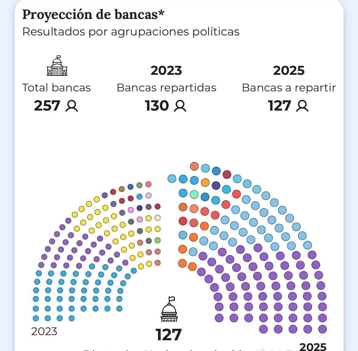 【米莱改革迎来首次全民公投——阿根廷议会选举结果公布】 哈维尔·米莱(Javier Milei)领导的“自由前进党”(紫色)获得 40.8% 的选票,而左翼反对派(蓝色)仅获 24.4% 这样,米莱的联盟新增64个席位,使其在众议院的总席位达到100个—接近国会的40% 米莱在两年内经济改革,通过了全面公投的考验。这个选举结果比米莱阵营最乐观的预测甚至还要好 -