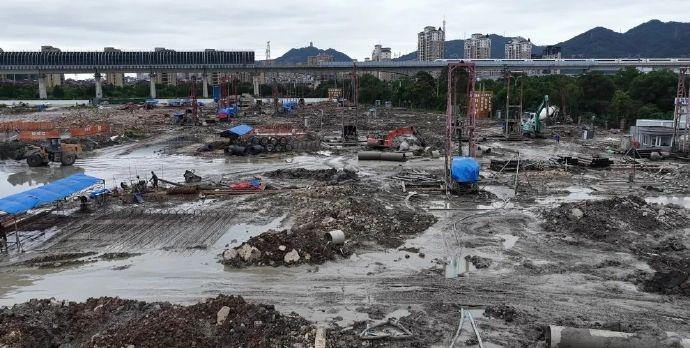 视频中能看到施工围挡,还有挖掘机等施工设备,这表明船台公园正在进行施工改造。这是
