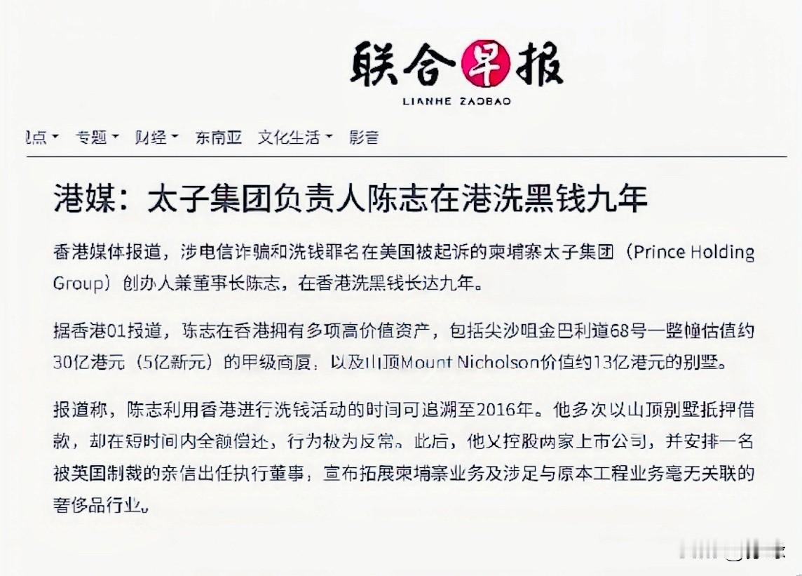 据香港媒体报道,太子集团负责人陈志在香港持续九年从事洗黑钱活动却长期未被察觉,其