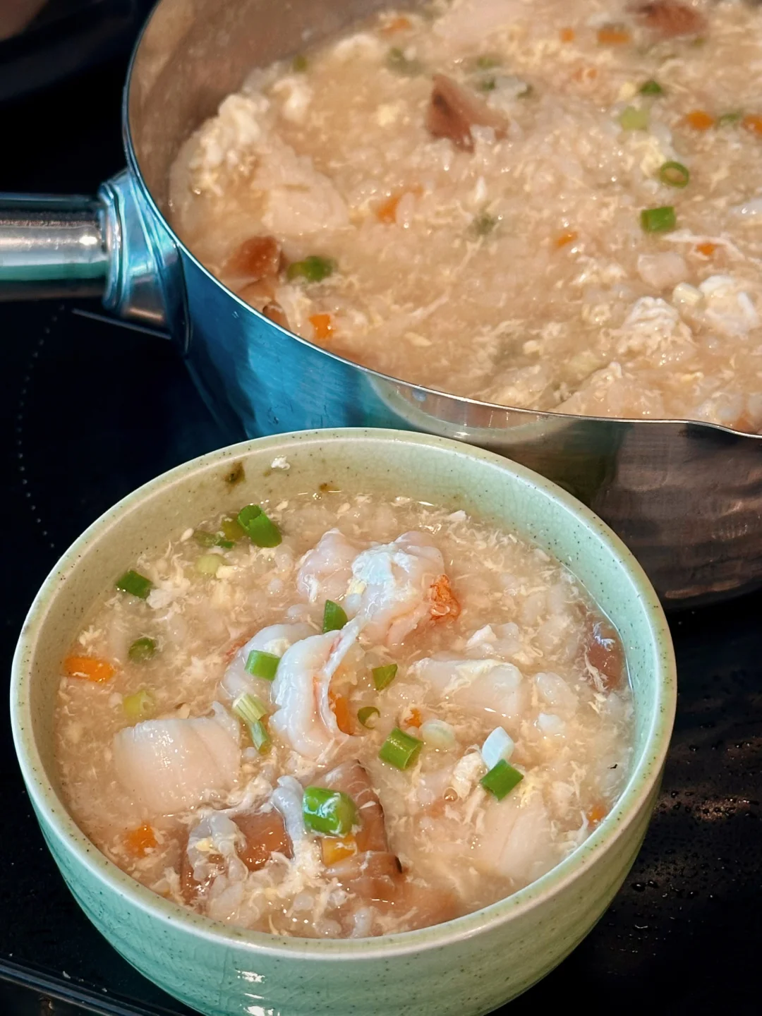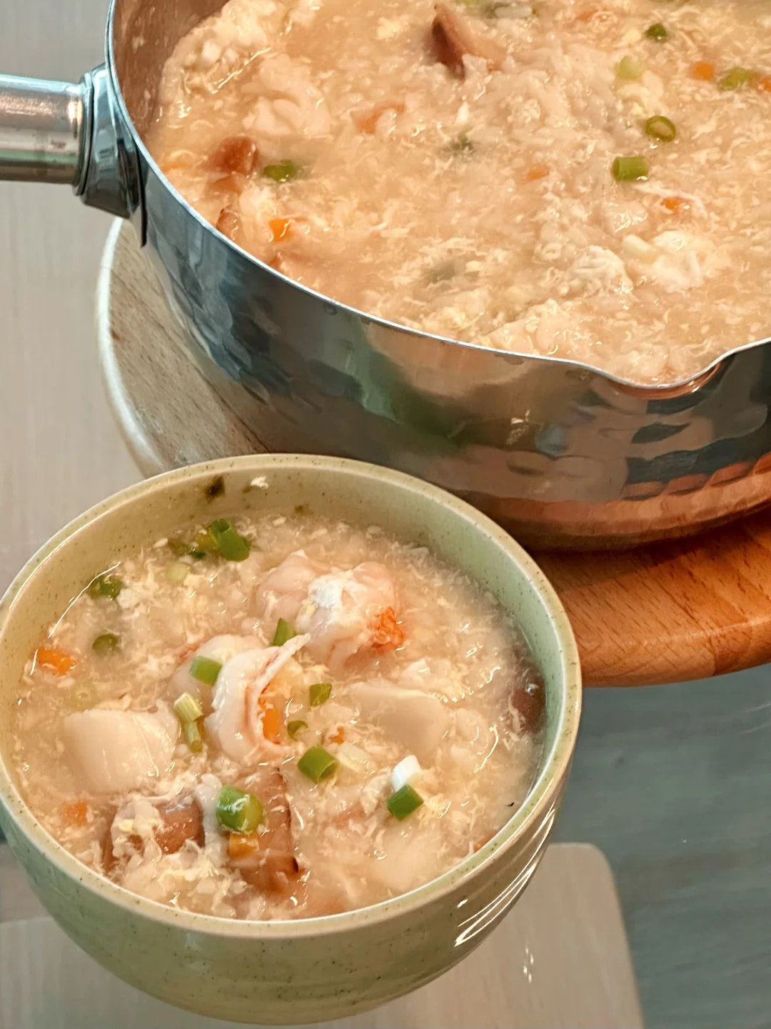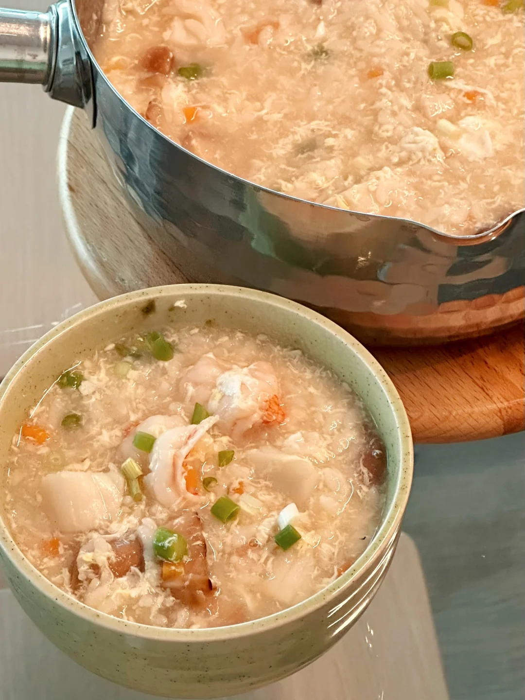 这两天纽约的温度忽然掉下来,早晨起床已经能明显感觉到凉意。再吃冷冰冰的酸奶水果就觉得不得劲了,刚好家里有米饭,就学着做了一锅日式海鲜米汤杂炊。