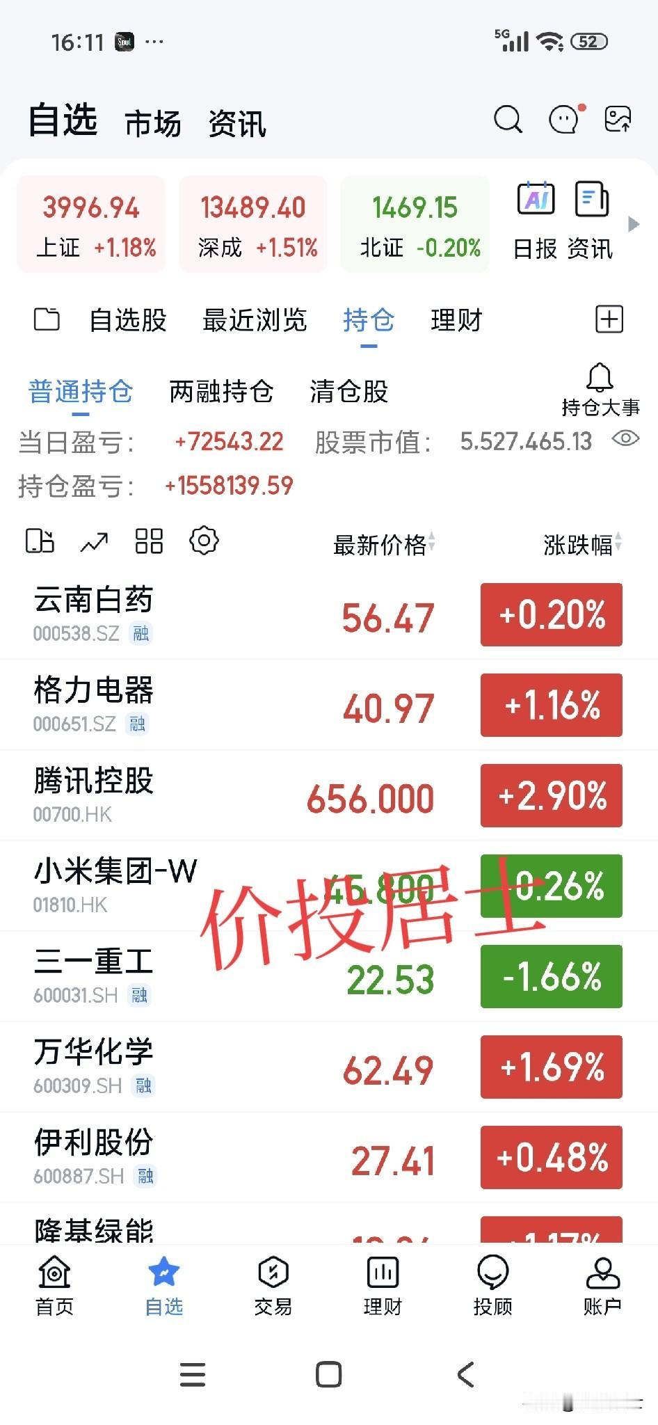 这会港股收盘了!今天的大盘就像提前上演了一部年度的大戏[呲牙]多次挑战4000点,但是每当最后关口总是差那么一哆嗦[呲牙]有些朋友说是什么精准控盘,这个今天存在这种可能性也不太大,为什么呢? 因为今天大盘涨的已经涨不少了,并不是原来就距离4000点只一步之遥,大家可别忘了,今天的大盘即使按照收盘来看,也是怒涨了1.18点了啊!但是明天要是再绕来绕去的就说不过去了。对吧?明天要不就过4000点,要不干脆砸一下,良性调整后再攻4000点,要这两个都不是,还真不排除精准控盘了[笑哭] 我的意思可以先破4000点,哪怕再砸回来都是非常好的,至少先冲破4000点的心理关口,让场外的资金都看看,急急他们[笑哭]这样即使回调,他们就认为是入场的机会了,省得让他们认为横久必跌!其实这个横久必跌也是不适用于牛市的,牛市是横有多宽,竖有多长!