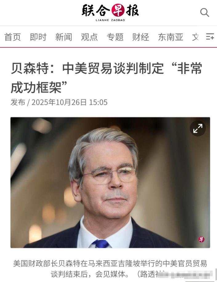 中美会谈结束,美财长:中美制定了“非常成功的框架” 首先这会谈不是突然凑一块儿的,是今年以来第五次面对面磋商了,之前已经磨了好几次,这次谈了两天,第一天就聊了五个半小时,第二天还接着谈,看得出来两边都挺当回事。 背景也很关键,现在中美那个对等关税暂停期11月10号就到期了,要是谈不拢,关税可能就涨回去,不管对咱们买进口东西,还是国内企业出口,都不是好事,所以这次会谈压力不小。 美方嘴里的“非常成功的框架”,说白了就是两边针对核心问题搭了个大架子,具体谈了些啥?咱官方都点了题,比如美国之前针对咱们造船和海运搞的那个不合理收费措施,还有能不能把关税暂停期再延长,另外芬太尼的关税和禁毒合作、农产品贸易、出口管制这些,都是实实在在的问题。 美方那边也说了,连稀土、农产品采购这些都聊到了,说明两边关心的事儿基本都摆到台面上了,没绕弯子。 但咱得心里有数,美方说“成功”,咱官方说得更实在,叫“达成基本共识”“形成初步方案”,还得走各自的内部报批程序。 这差别就能看出来,咱们办事儿稳,不夸大,也不藏着掖着,而且谈判过程根本不是一帆风顺的,咱们商务部的人都说了,美方立场挺强硬的,讨论得特别紧张,能谈出结果全是两边博弈出来的,咱们维护自身利益的态度一直很坚定,不是随便妥协换来的。 再说说这个“框架”到底成在哪里,最直接的一点,美方明确说了不再考虑对中国加征100%的关税了,这可是个重要信号,之前一直有这风声,现在总算把这颗雷暂时排了。 另外,两边都同意接着细化细节,还准备提交两国领导人审议,这说明不是谈完就散了,是真要往落地推进。 对咱们老百姓来说,关税不涨,以后买些进口商品就不会突然变贵,农产品贸易谈妥了,市场上的货可能更全,物价也能稳点。 但咱也不能光听好话就飘了,得清醒着点,现在只是搭了个框架,好多关键问题还没彻底解决,比如美国之前加的那些关税,这次没说要取消,只是暂停延长;还有他们对咱们高科技领域的出口管制,这次会谈也没提松动的事儿;那个造船业的301收费措施,也没说要撤。 这些都是咱们实实在在的关切,美方现在没松口,后续还得接着谈,所以这框架只是第一步,不是终点。 还有个关键点,这次会谈是为了给接下来的APEC会议期间两国领导人会晤铺路,全世界都盯着中美这两个大块头,要是能谈妥,不光是两国经贸稳了,全球经济都能松口气。 之前每次中美关系紧张,美国股市都跌,咱们的出口企业也犯愁,现在局势缓和点,不管是国内老板姓还是国外的投资者,心里都能踏实点。 咱中方的态度一直特明确,何立峰副总理都说了,中美经贸本质是互利共赢,合则两利、斗则俱伤。 这话太实在了,两边要是一直对着干,谁都没好处。 这次能谈出框架,就是因为双方都认清了这个理儿,愿意坐下来平等对话,但咱们的底线也绝不会让,该维护的利益一分不让,美方想占便宜没门,这点从谈判过程里就能看出来,强硬归强硬,咱们不吃那套。 现在最关键的是后续的落实,框架搭得再好,不落地也是白搭。两边都要走内部报批,之后还得细化每一条约定,比如关税延长多久,农产品买多少,稀土出口怎么安排,这些都得写明白、定死了。 而且得有机制盯着对方履约,要是美方以后又变卦,咱们也得有应对的办法,不能让他们耍小聪明。 总的来说,这次会谈确实是个好事,紧张局势缓和了,给双方都留了余地,也给全球经济吃了颗定心丸。 但咱不能盲目乐观,得看到还有不少问题没解决,后面的路还得一步一步走,美方喊“成功”是他们的说法,咱们更看重实际行动,只要能真正做到相互尊重、互利共赢,这框架才算真的成功,不然都是白搭。 参考资料: 环球时报《中美吉隆坡磋商达成基本共识,“紧张局势有所缓和”》