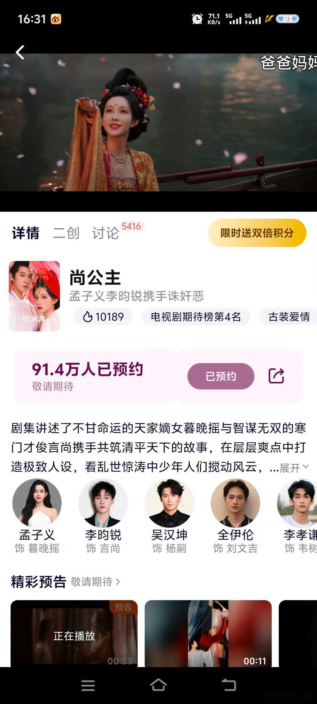 尚公主热度破万我们《尚公主》火火的很安心,预告一发,热度直接破万,好牛[打call][打call][打call]孟子义李昀锐尚公主热度破万