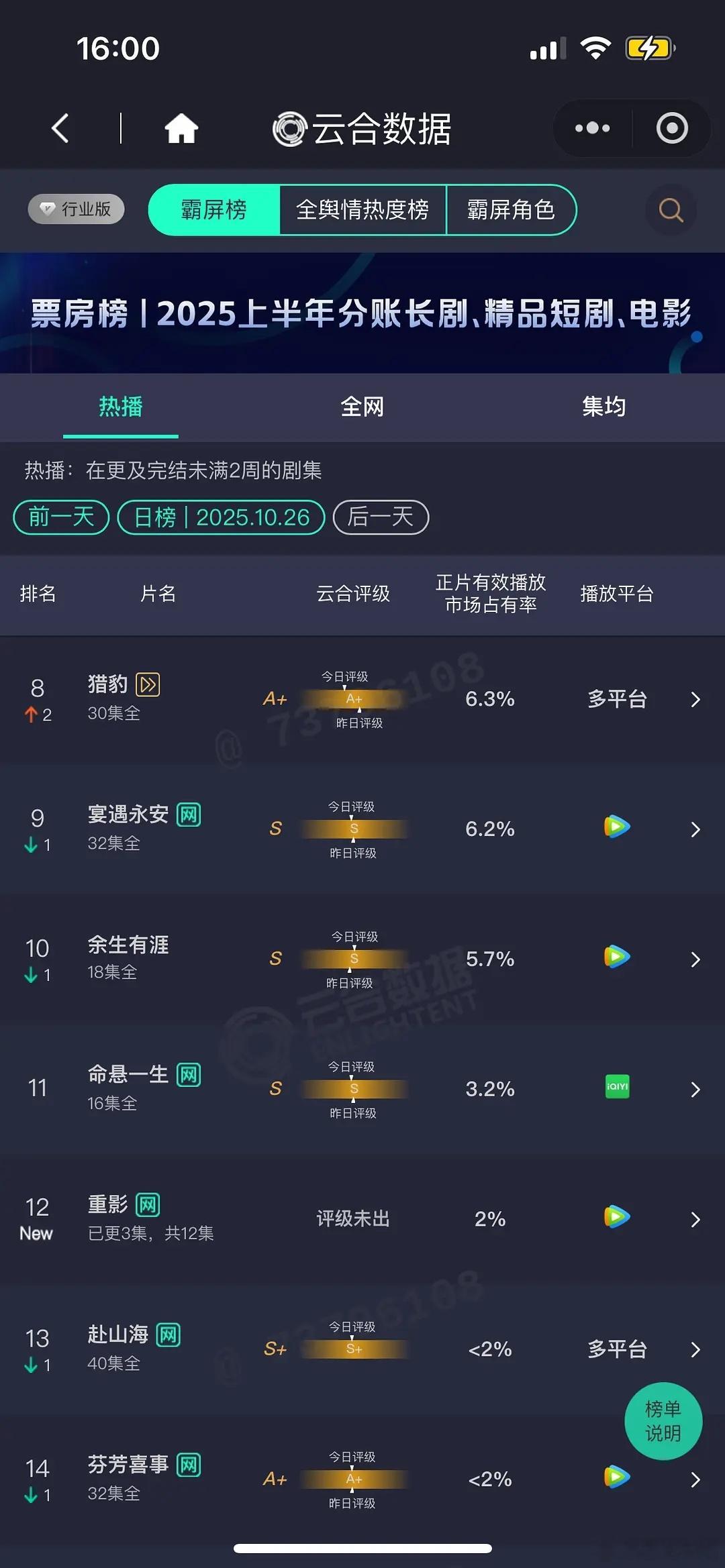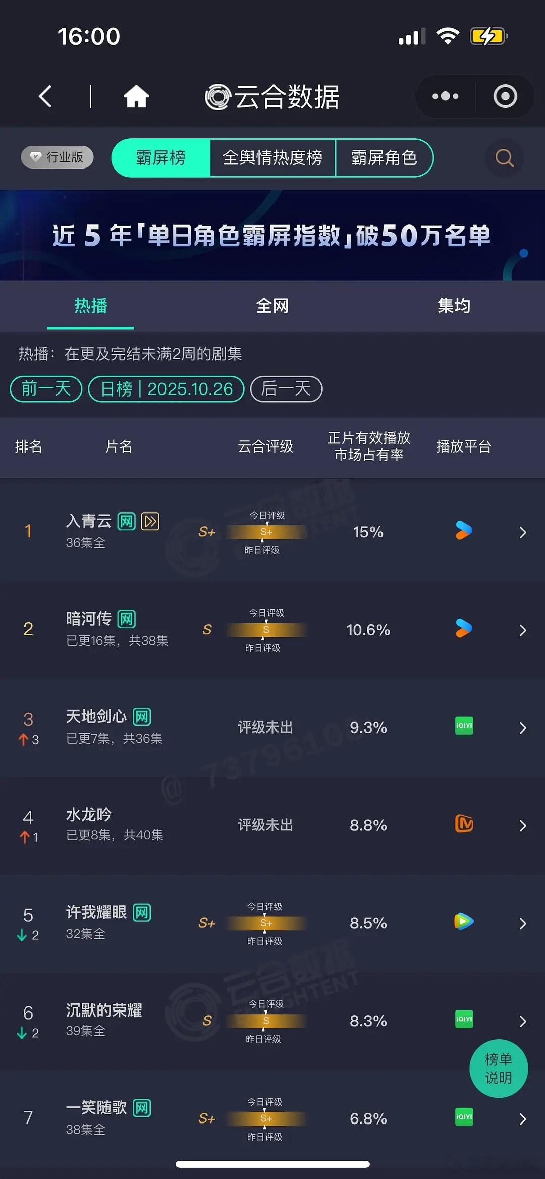 水龙吟导演你的养老保险来了10月26日云合播放量!昨天水吟龙后台播放量涨了1亿,怎么云合数据没涨多少?