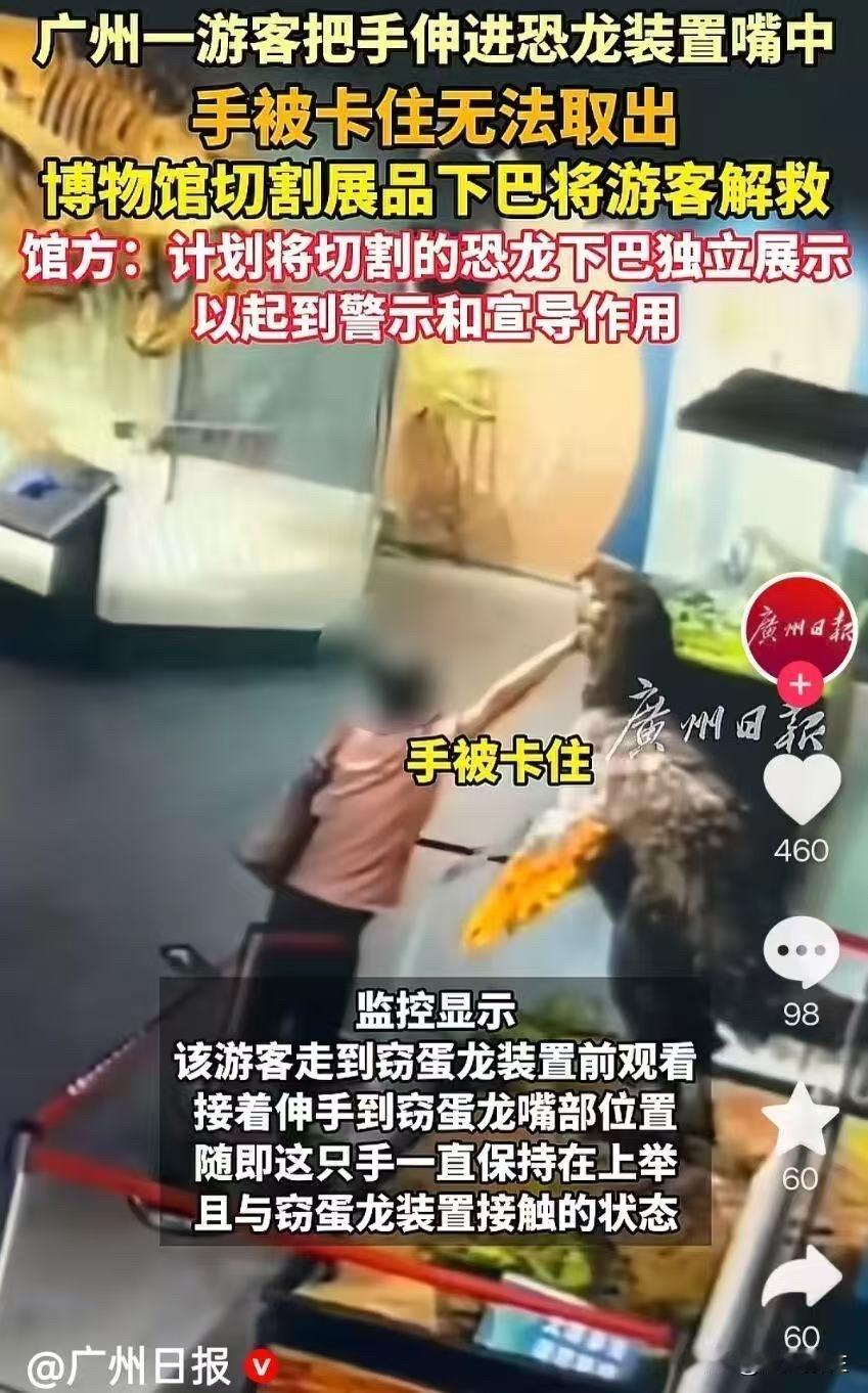 感觉广州博物馆的恐龙装置很神奇啊!居然卡的这么死!上演一出博物馆伸手必捉的惊险故事! 广州博物馆还是很人性化的,不仅切割了恐龙头,还要另作展览,以示警戒[呲牙]