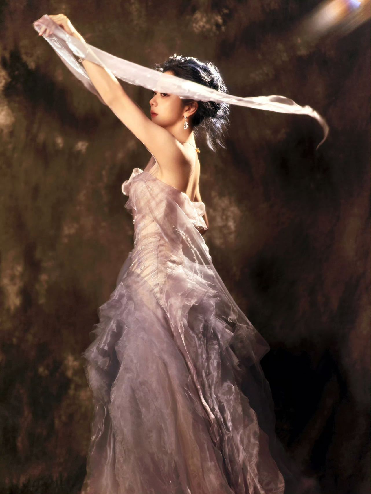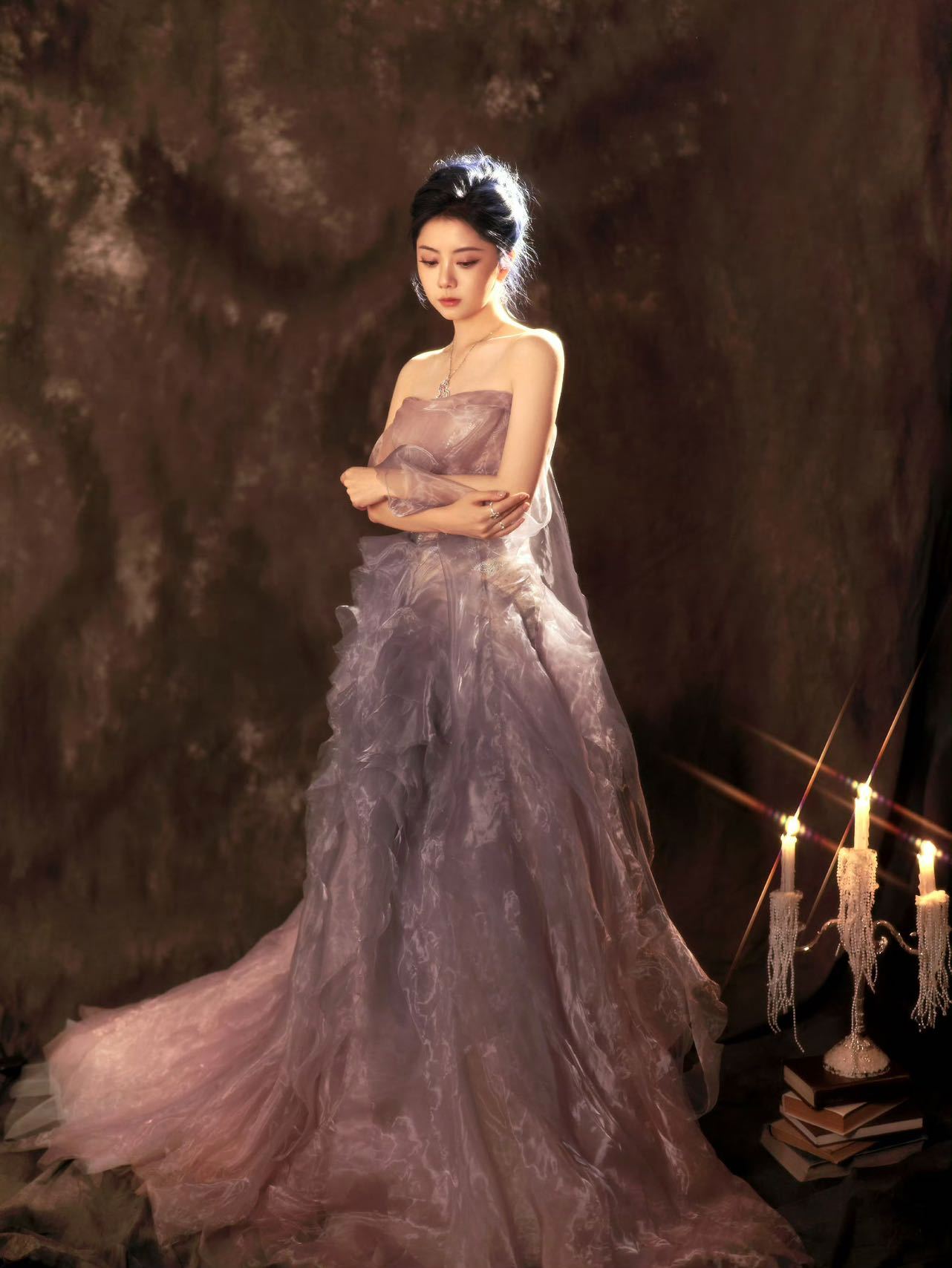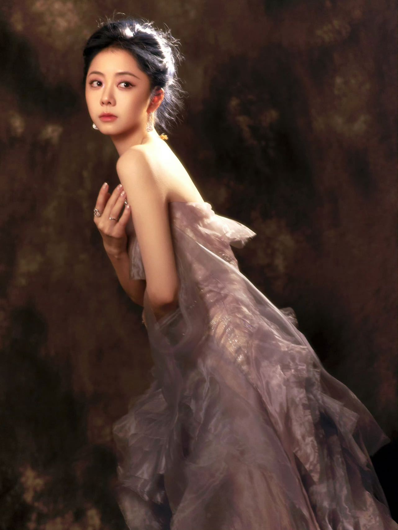 谭松韵紫色抹胸纱裙 谁被这一身美到了?谭松韵的紫色抹胸纱裙太懂氛围感了,淡紫色温柔又浪漫,纱质轻盈灵动,配上她的笑容,优雅复古的油画美人感直接拉满!