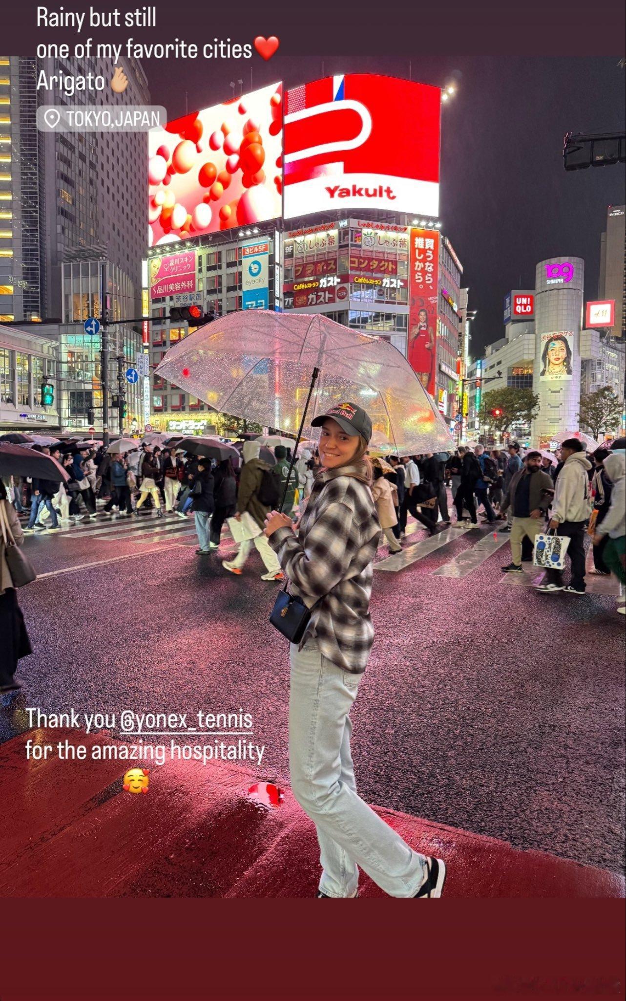 莱巴金娜则在日本打卡,被粉丝偶遇