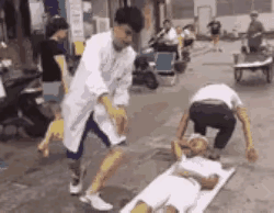 什么叫神补刀,这就是……一个小伙子受伤了,边上的群众赶紧拿起手机给他拨通了120,过了几分钟120急救车赶到,下来两位穿着白大褂的精神小伙,拉着担架跑了下来,由于受伤小伙太重了,站在前面的白大褂小伙一下子没站起来一屁股坐了下来,把受伤小伙儿压了一下……后来终于抬起来了,没想担架又破了……只能说,这位受伤小伙子今天出门一定没看黄历,太不顺了……补刀神评论 顶浪救人 救命神操作 救人术 特效救人术 独门救人方法 救人疾病