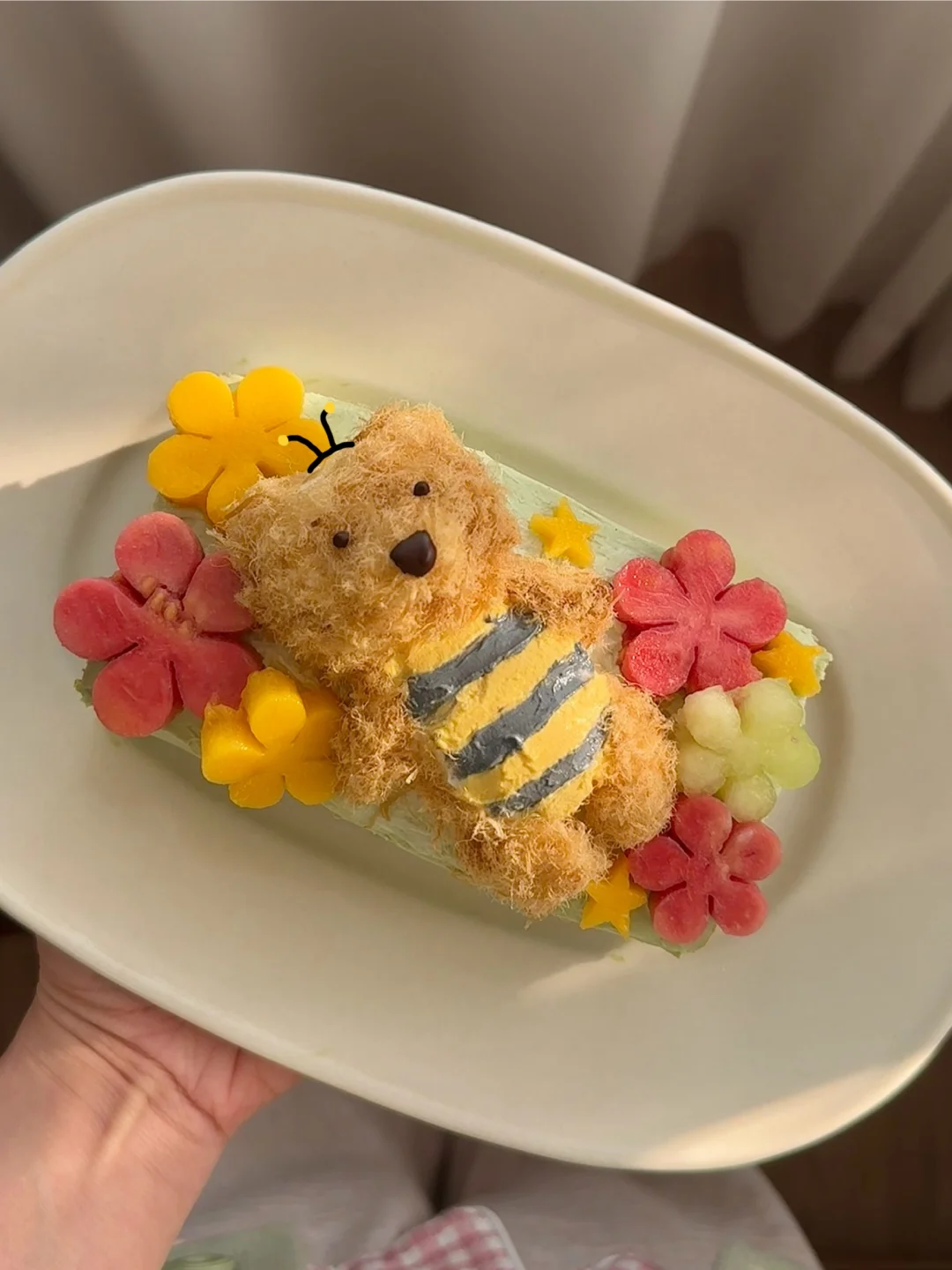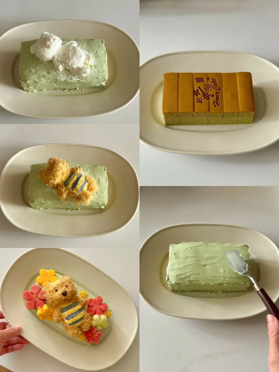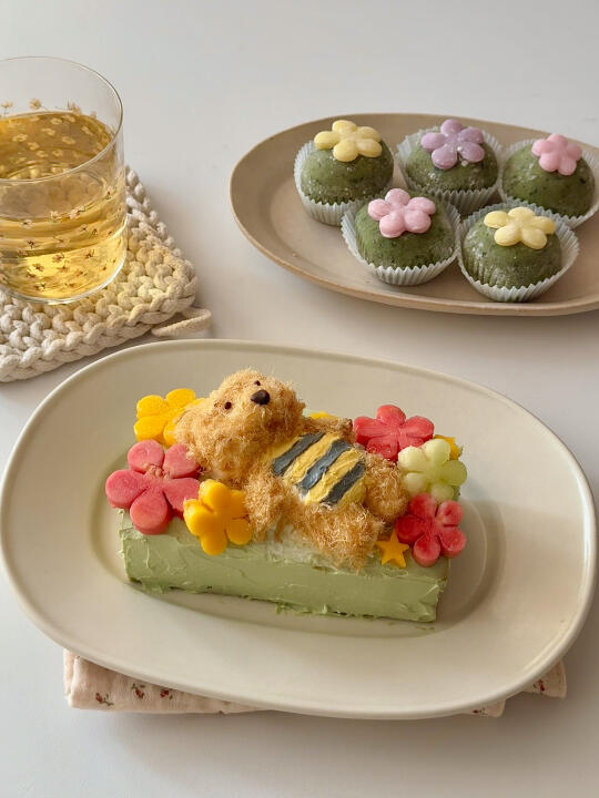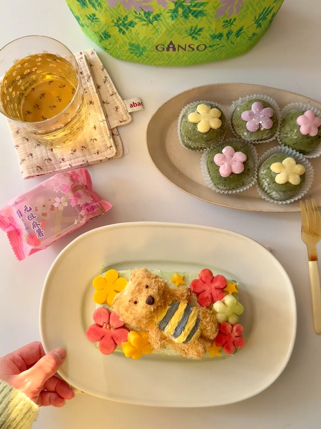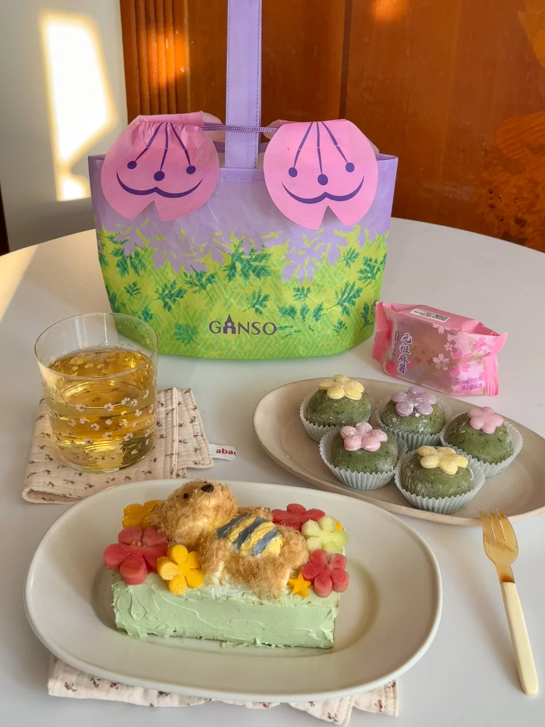 和小熊一起把春天搬到餐桌上 一口又一口的吃下一整个春天🍃 - 小熊蛋糕材料:元祖蜂蜜蛋糕抹茶味、希腊酸奶、肉松、红心芭乐、芒果 花花青团材料:元祖青团、糯米粉40g、玉米淀粉10g、水65g、玉米油5g、糖5g、调色(仙人掌果粉、南瓜粉、紫薯粉) 花花青团步骤: 1️⃣把麻薯皮的材料混合均匀,倒入平底锅里,小火炒至,炒好的糯米团反复拉扯至拉丝,分成3块调成粉色、紫色、黄色的麻薯 2️⃣将麻薯撒上熟糯米粉,擀薄后用模具印出花花的形状,沾在青团上 小熊蛋糕步骤: 1️⃣希腊酸奶分一部分出来加入抹茶粉进行调色,均匀的抹在蛋糕体上 2️⃣将剩余的酸奶捏出小熊的样子,粘上肉松,用巧克力酱画上鼻子和眼睛 3️⃣将水果用模具印出花花的形状,摆放在蛋糕上就好 - 元祖的踏青福袋也太适合春季出游了吧,提上艾草青团和樱花麻薯一起赏春去! 一袋就能解锁5种不同口味的青团和1颗草莓樱花麻薯,每个口味我都超爱 🥚蛋黄肉松味:经典口味,选用长纤维肉松+一整颗咸蛋黄,咸甜不腻 🫘红豆芝士味:香甜软糯的红豆搭配奶香浓郁的kiri芝士,芝士的微咸中和了红豆的甜味,吃起来甜而不腻,口感层次丰富 🫙奇亚籽芝麻味:入口是满满的黑芝麻香,还添加了2%富含膳食纤维的奇亚籽,口感油润香甜,好吃又健康 🥜花生燕麦味:东北大花生+澳洲优质香脆燕麦,每一口都能吃到花生颗粒,满口留香 🧀芝士云腿味:云南宣威云腿+安佳芝士,芝士的奶香搭配火腿的咸香,中西结合,咸甜交织 🍓草莓樱花麻薯:糯叽叽的樱花麻薯外皮包裹着流心且有真实草莓颗粒的草莓果酱,酸甜可口 踏青福袋里甜咸都有,可以随意选择自己的喜欢的口味,这点也做的太贴心了吧! 而且外皮用的都是加入了真实的艾草,含量5.9%。艾草纤维清晰可见,每口都带有艾草清香味🌿,一整个就是把春天吃进肚子里! 就连抹茶口味的蜂蜜蛋糕也做得如此好吃!含量高达16%的高品质椴树雪蜜中和了抹茶的微苦,蛋糕吃起来松软可口,甜而不腻! 元祖在全国有760+门店,7km内免费配送,2h内送达,这一条龙配送服务也太方便了!