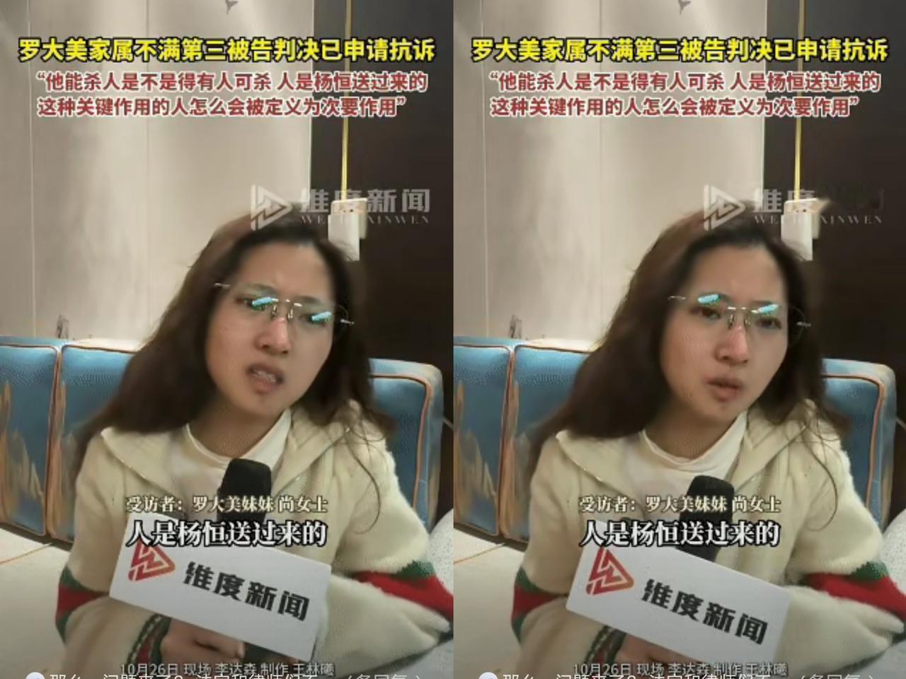 必须为罗大美妹妹的清醒和勇敢点赞!面对哥哥被残忍杀害的悲剧,她一句“凶手要杀人,总得有人可杀吧”,问得直击要害,道出了无数人的心声。 若不是杨恒以熟人身份,将毫不知情的哥哥诱骗到凶手余金生的住处,素不相识的凶手根本无从下手 。就像网友说的,朋友叫开门才会开,陌生人绝不会应,叫门的人怎会无关?可法院却因杨恒未动手、未分赃,认定其为从犯仅判十三年。 检察机关都曾认为三人不分主从,杨恒的诱骗明明是悲剧的起点,是犯罪链条最关键的一环。法律不该只看谁挥了刀,更该算清谁铺了路。支持妹妹抗诉到底,别让“引狼入室”的真凶借着“从犯”之名逃过重罚,还逝者公道!