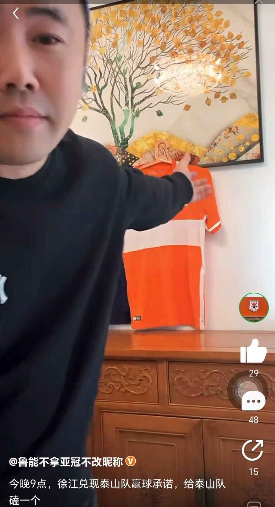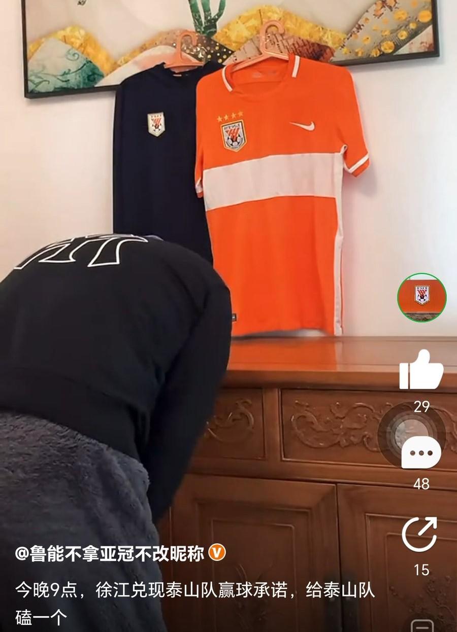 知名足球媒体人徐江兑现承诺,冲山东泰山队球衣磕头鞠躬。 知名足球媒体人徐江,曾表示山东泰山若主场拿下上海海港,他将给山东泰山队磕一个。赛后,徐江兑现了诺言,给泰山队球衣鞠躬,并念念有词:崔康熙啊,这场比赛你看了吗,我们赢海港了,我给你磕一个,你别回来了吧! 而且又自带腔调,喜剧效果拉满,有兴趣的可以搜视频看一下。 山东泰山队