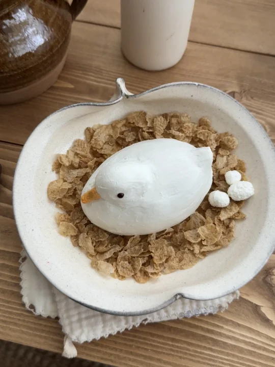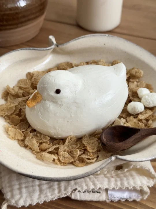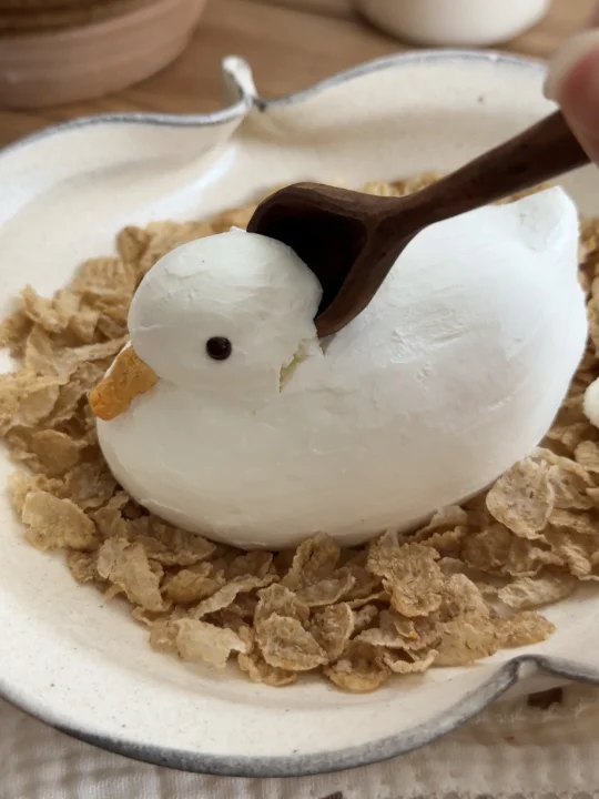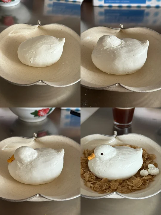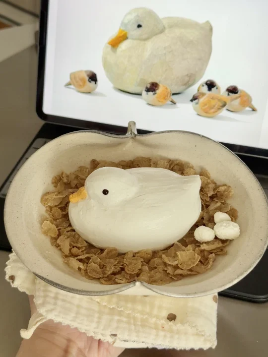 用酸奶捏了一只胖嘟嘟 奶huhu的柯尔鸭 看着就很好rua的感觉~ - 材料:希腊酸奶(尽量过滤得干一些)、燕麦,南瓜粉、巧克力酱 步骤: 1️⃣过滤好的酸奶用保鲜膜包着酸奶捏出一只鸭子主体,再加上尾巴以及鸭头,然后调整一些细节,最后用巧克力酱画上眼睛 2️⃣在碗里铺上喜欢的燕麦、果干就可以啦,还可以淋上些蜂蜜搭配着吃