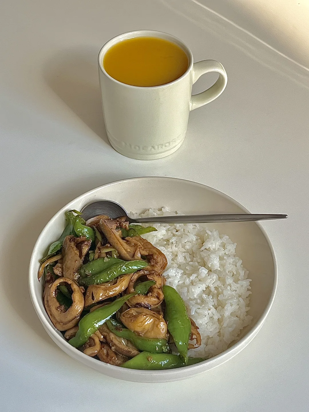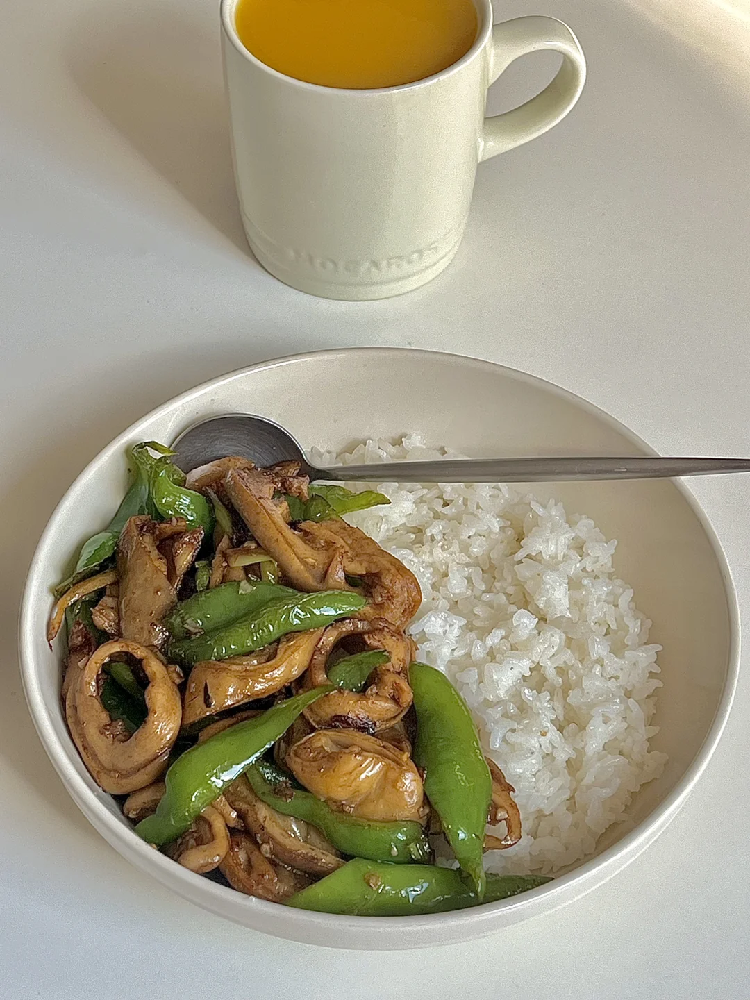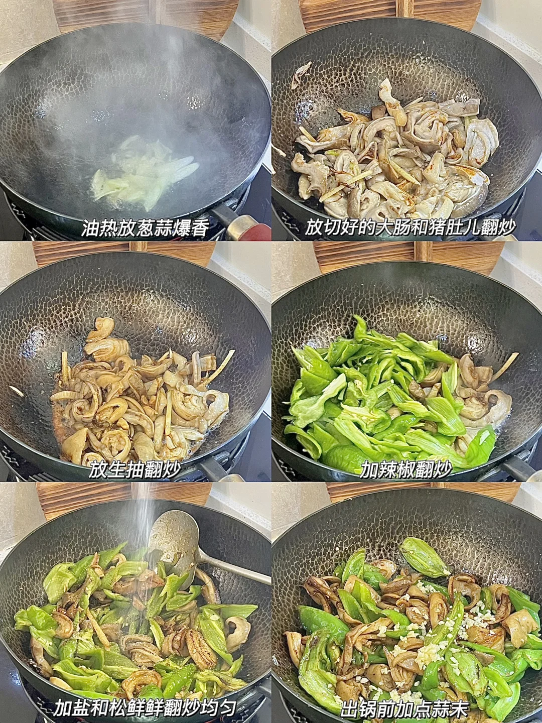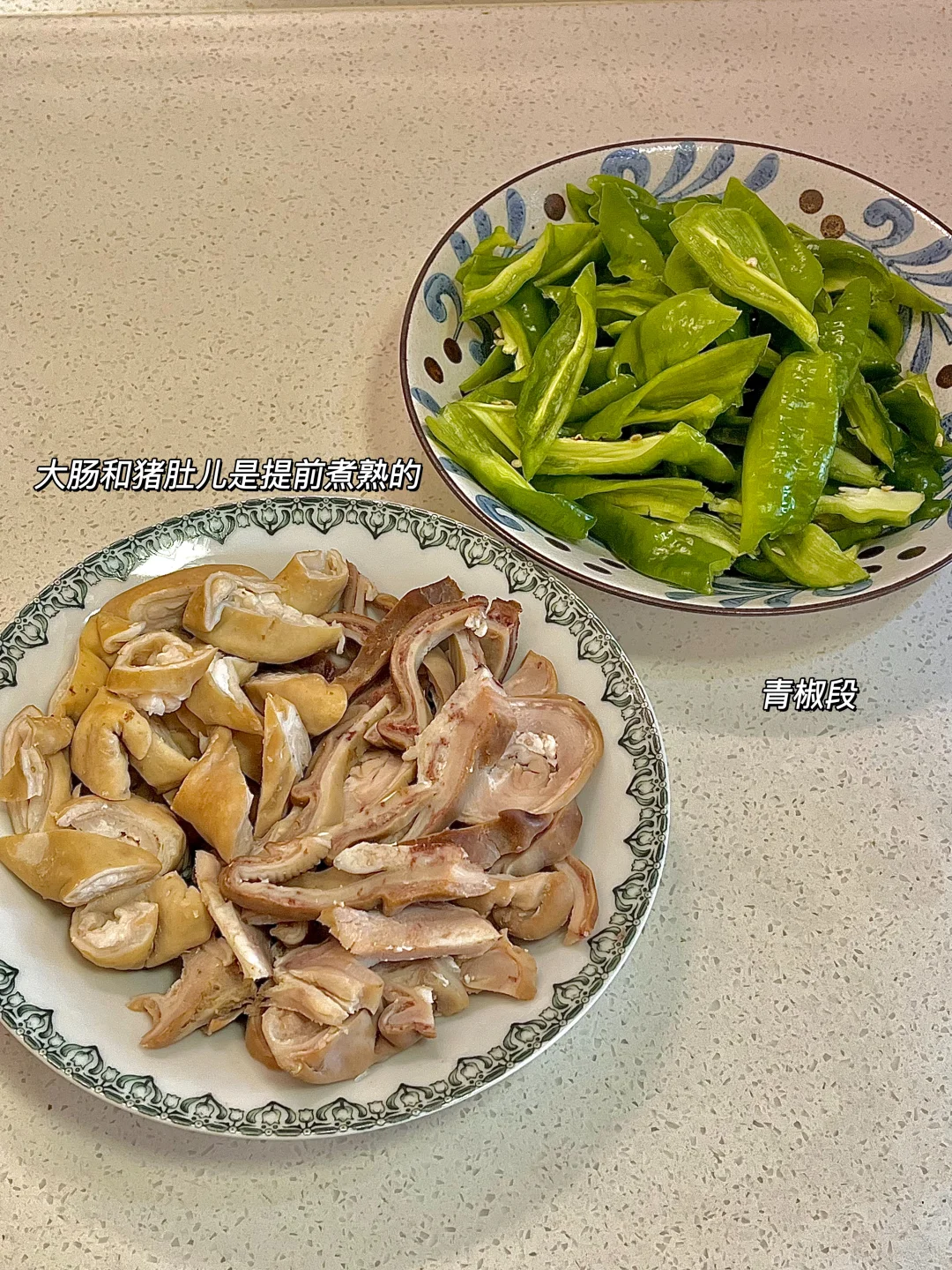 今日份一人食午餐分享: 辣椒炒肠肚儿 白米饭🍚 一杯果汁🍹 . 食材:煮熟的猪大肠和猪肚儿 青椒🫑 做法如图上⬆️ . 有没有跟我一样喜欢吃大肠和猪肚儿的啊,我真的太喜欢吃了,贼下饭啊😋