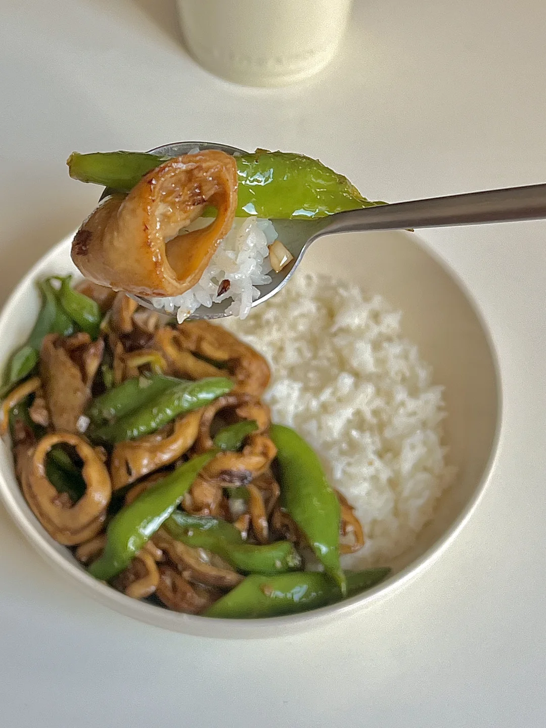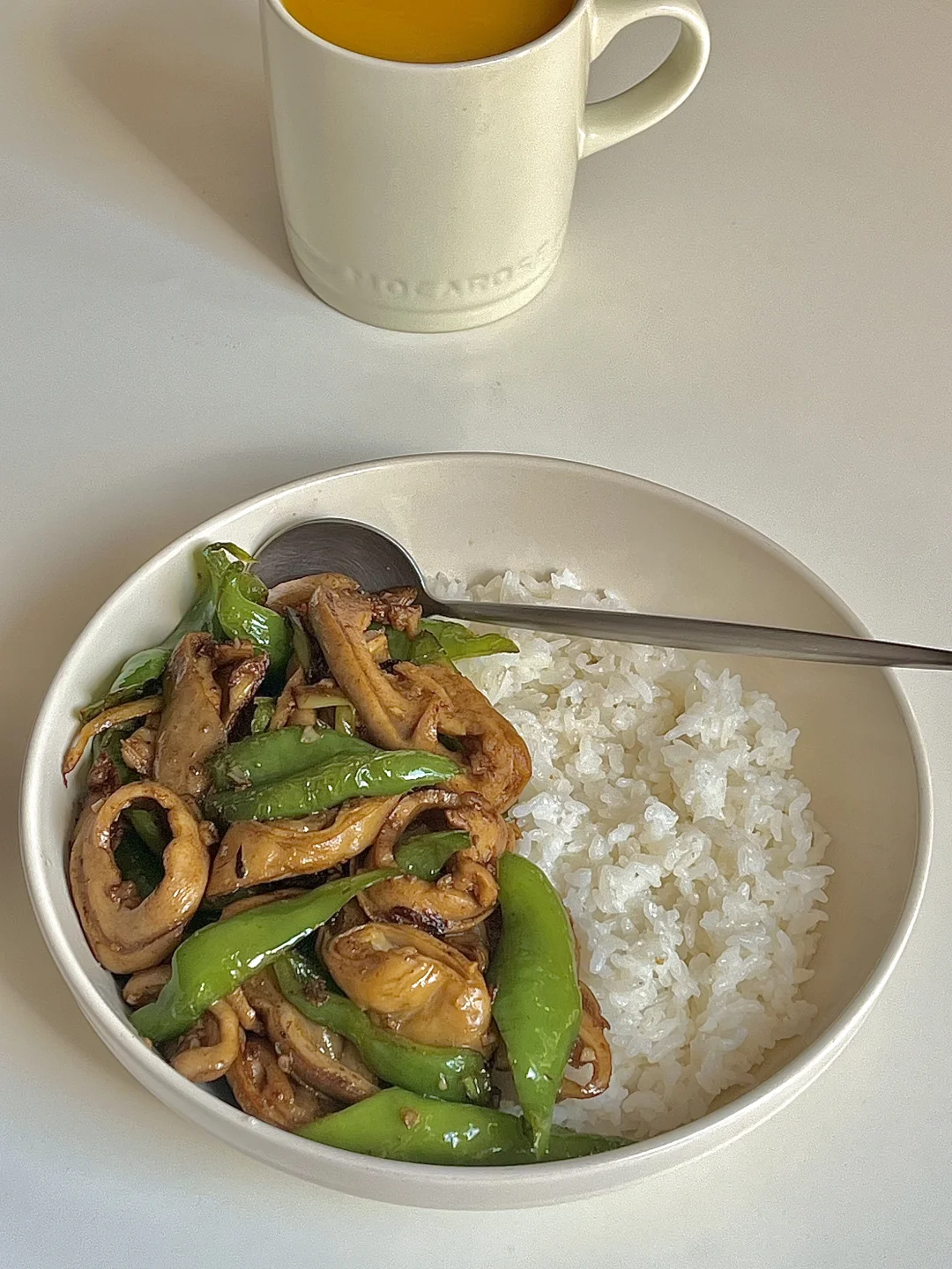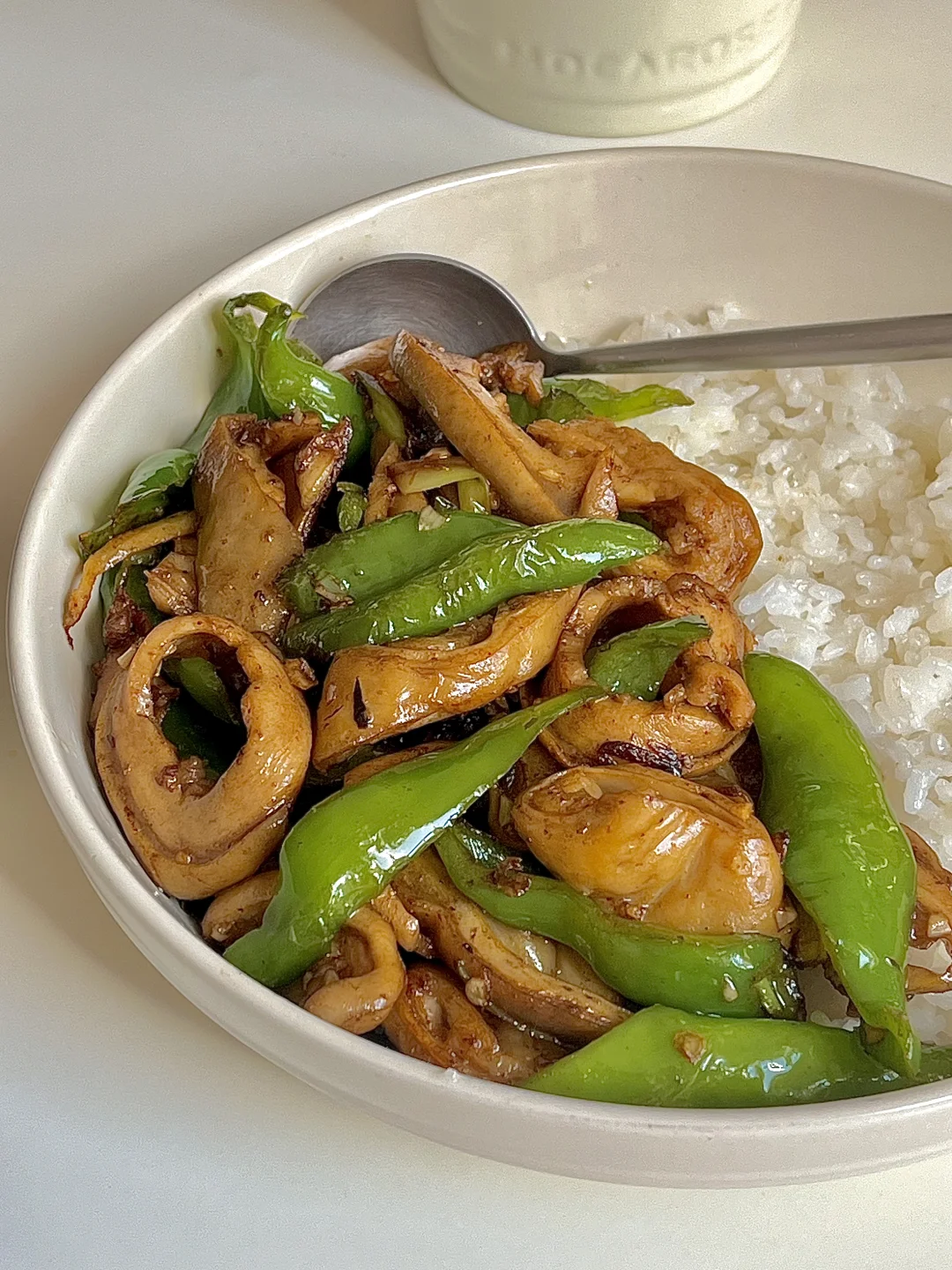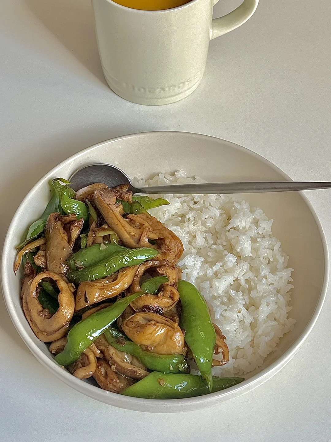 今日份一人食午餐分享: 辣椒炒肠肚儿 白米饭🍚 一杯果汁🍹 . 食材:煮熟的猪大肠和猪肚儿 青椒🫑 做法如图上⬆️ . 有没有跟我一样喜欢吃大肠和猪肚儿的啊,我真的太喜欢吃了,贼下饭啊😋
